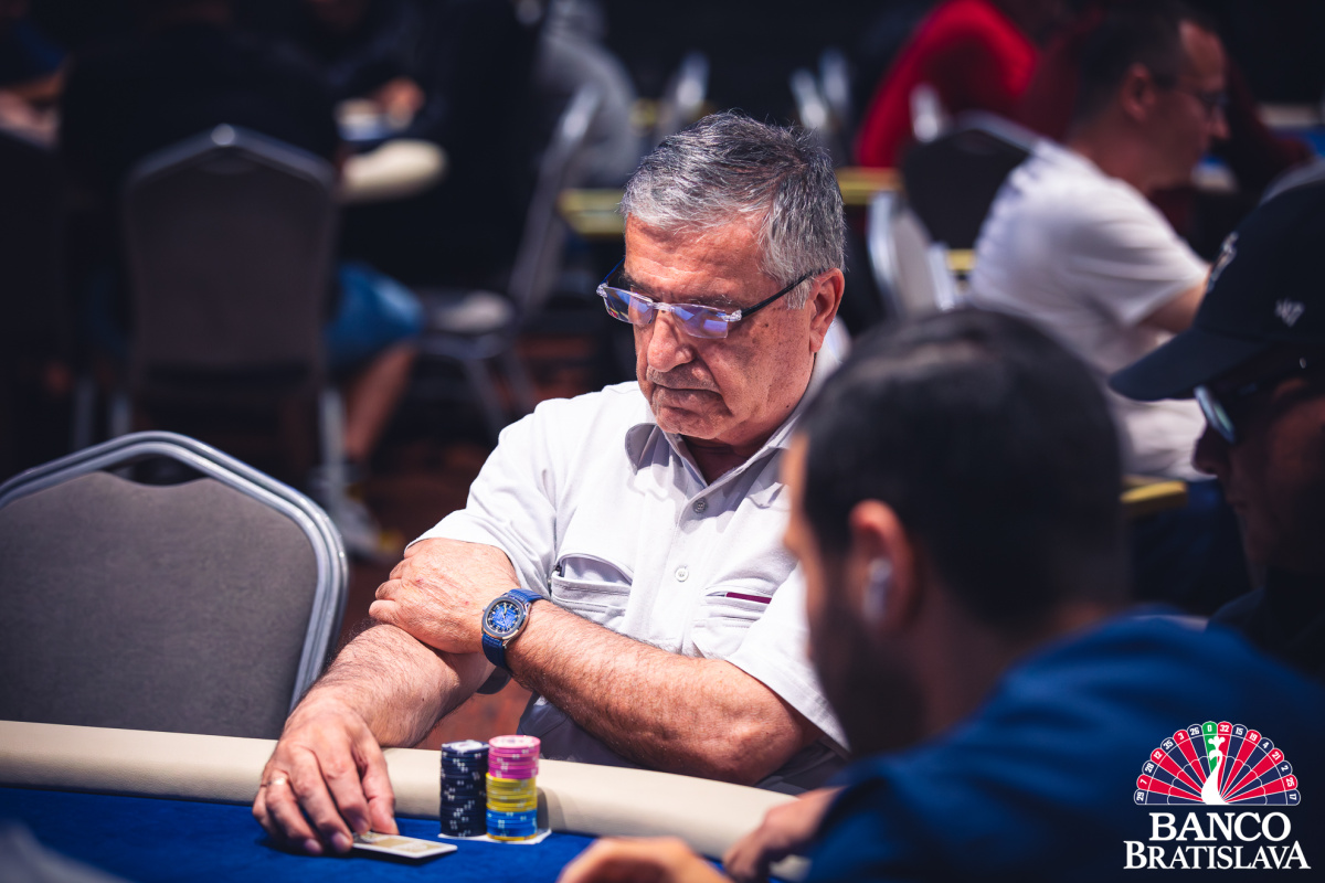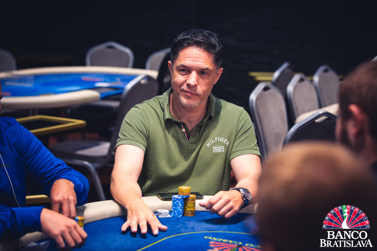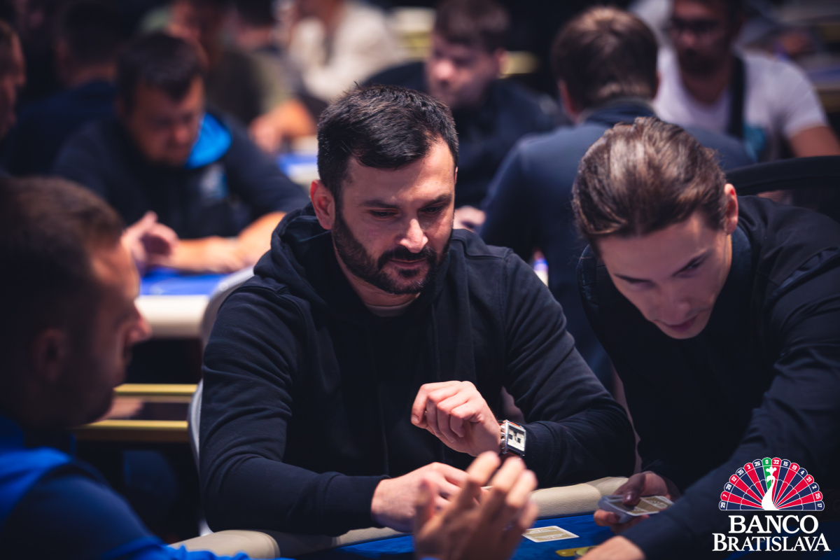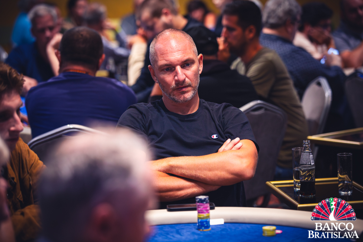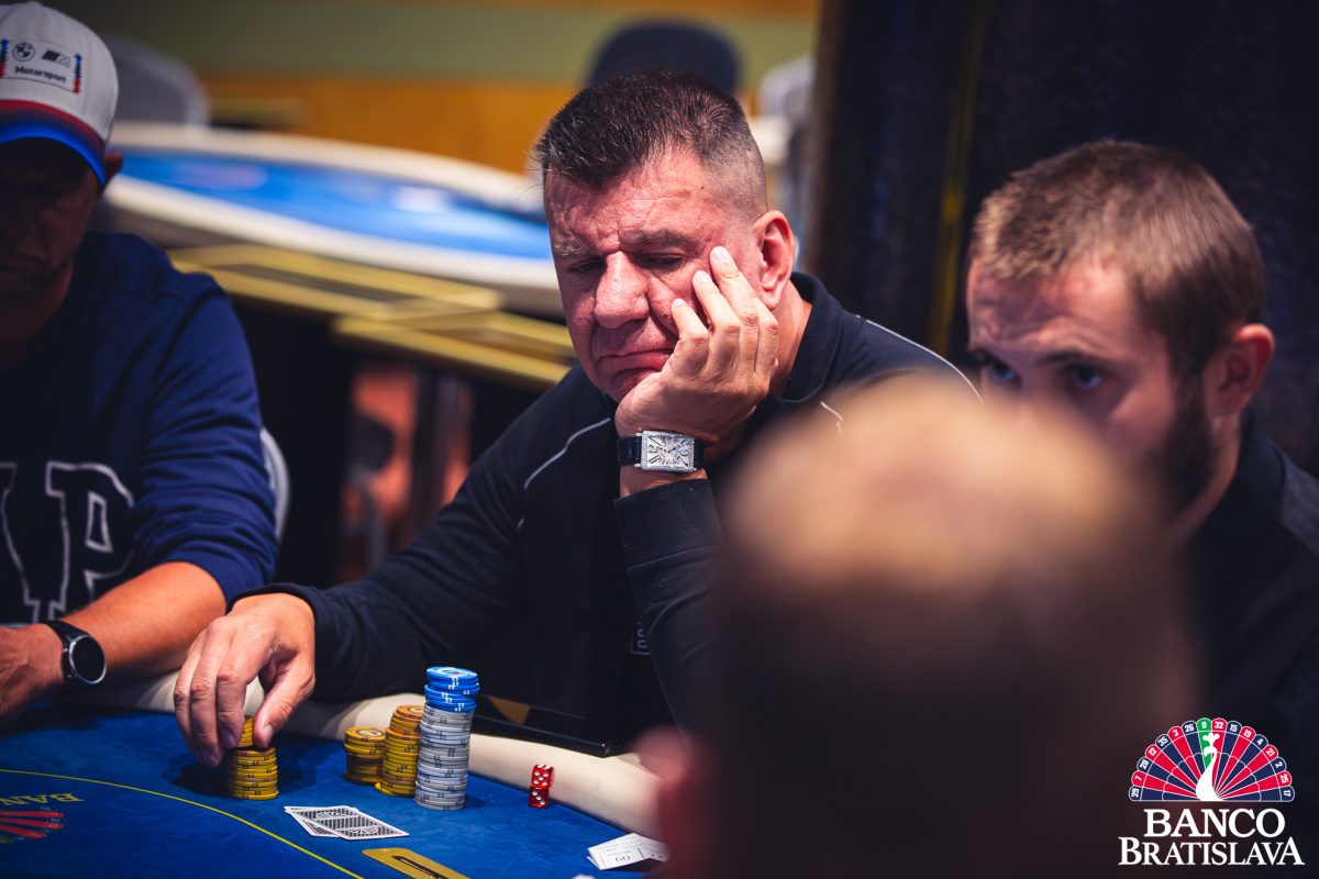 Tibor sa dnes rozhodol hrať o niečo divokejšie ako obvykle a podarilo sa mu zhromaždiť slušných asi 850,000. V poslednej hre svoj stack znova posunul za čiaru, tentokrát s Ax Kx a Muldur, ktorý držal asi 800,000 dorovnával s Ax Qx. Board Qx Xx Xx Xx Kx však na maďarskej strane stola spustil hlasný výbuch radosti a Tibor sa dostáva na obrovský stack.