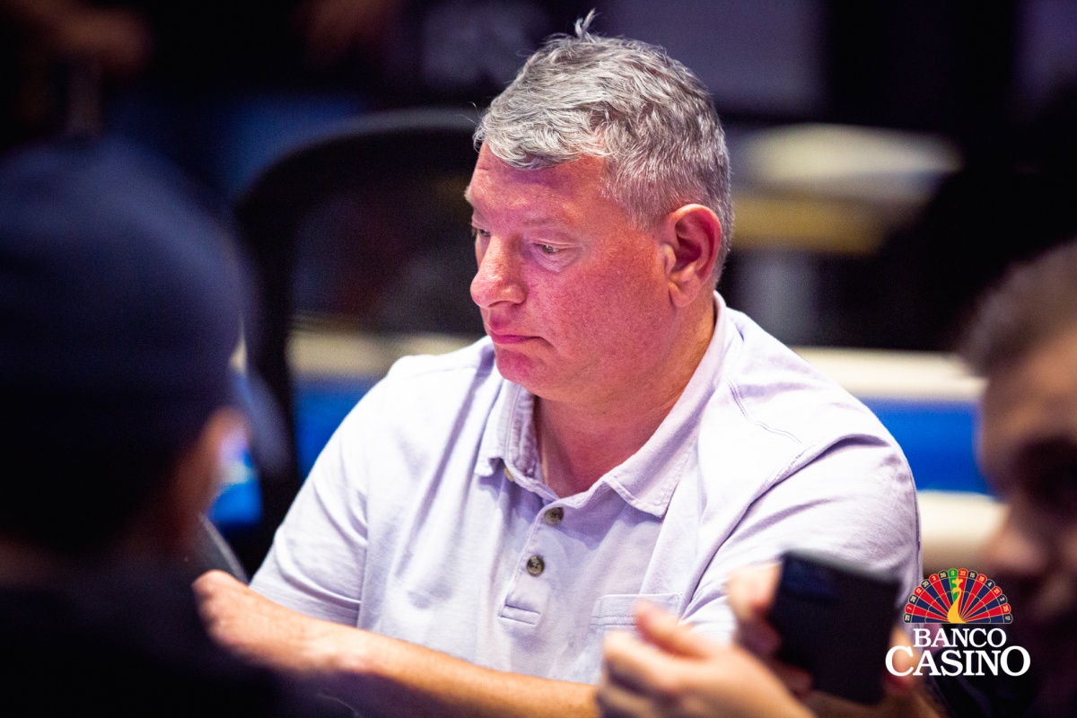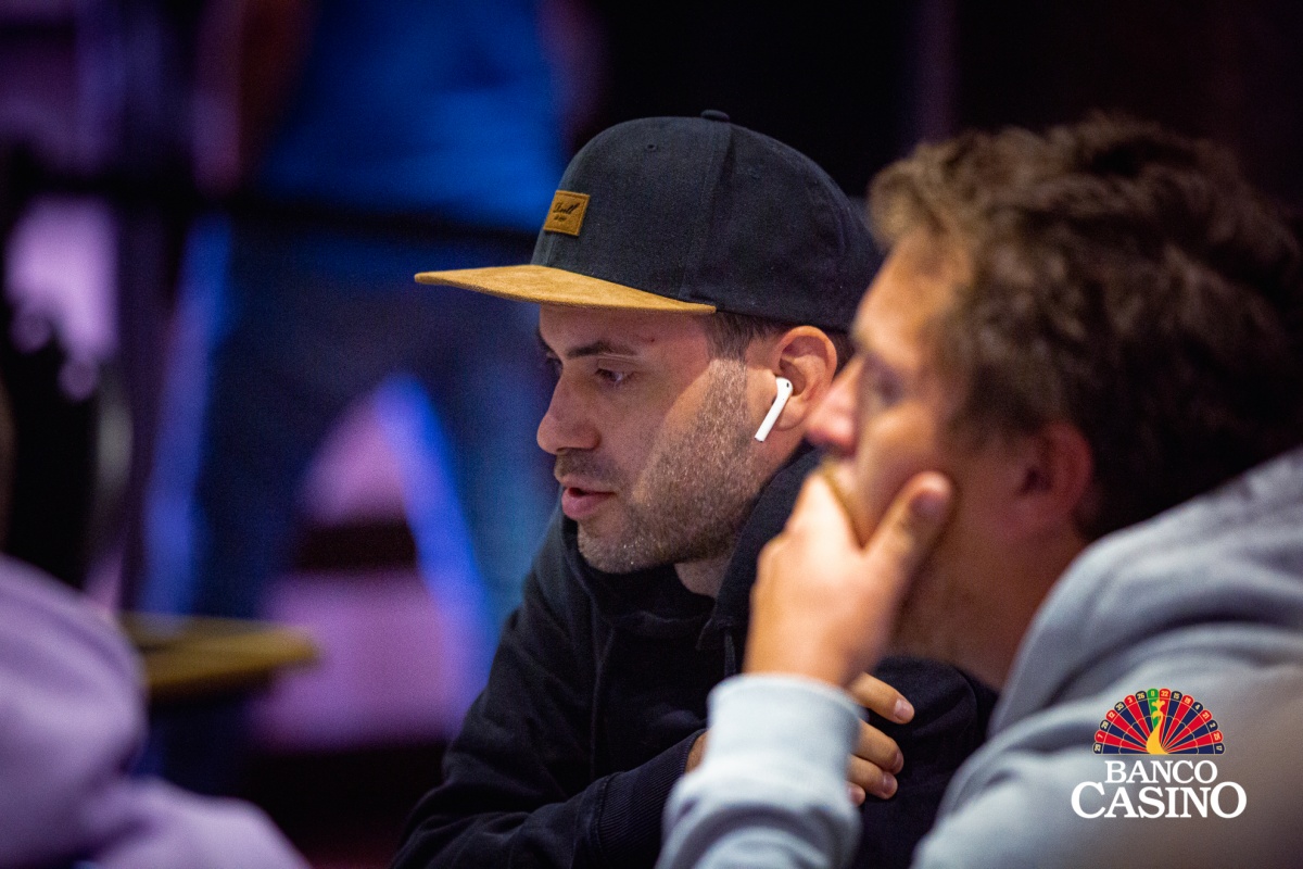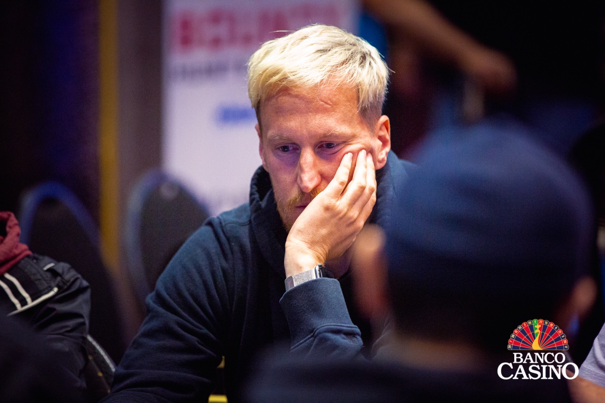 Rusu otvoril button na 255,000 a Schnierer bránil z bb. Flop 9d 6d 6h obaja checkli. Na turne 8c Matúš betuje 375,000 a Marius pomalým tempom platí. Na rivr 8s Schnierer posiela all in efektívne 1,475,000 a Rusu premýšľa dlhé minúty. Nakoniec sa odhodlá dorovnať, Matúš otáča Js 5s, Rusu pot berie s Kh 3d.
