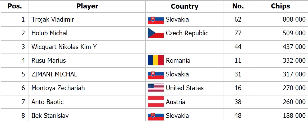 Boje vypuknú už čoskoro ! Ako chipleader nastupuje Matúš Schnierer, ktorý si postup zabezpečil z ranného hyperturba a pozbieral krásnych 1,198,000 !