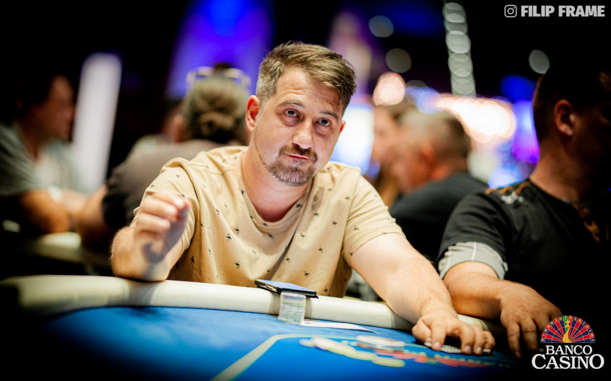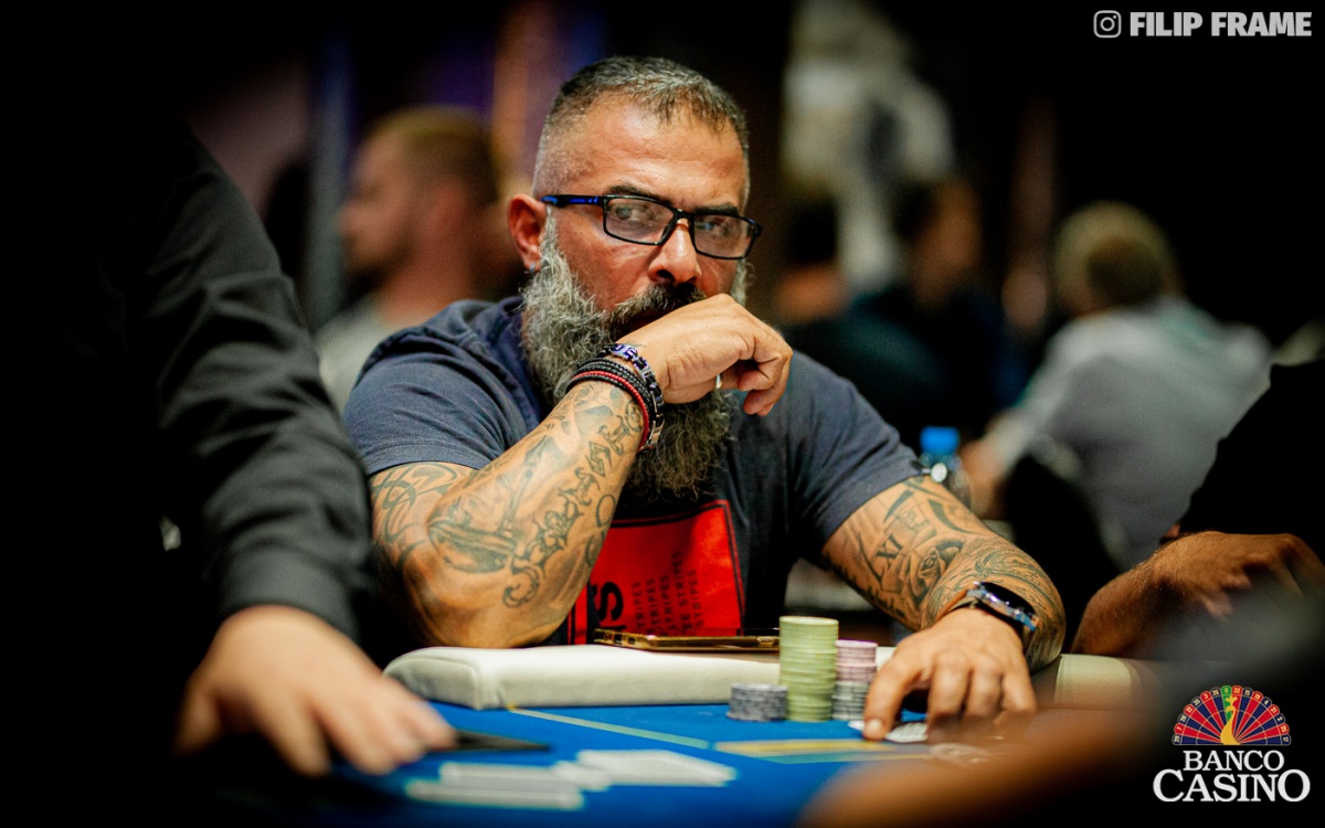 Matuský z Ep otvoril na 2,500, Zimáni po nepodarenej hre poslal svojich 3,500. Stevic raisol na 20,000 z Mp. Zahraničný hráč na buttone poslal asi 70,000, Jaro Kolín zo sb dorovnal svojich asi 60,000. Goran z bb sa púšťa, Matuský tiež. Stevic snapuje s esami a všetkých pokrýva, button ukazuje Ax Qx, Kolín Jx Jx a Zimáni 7h 6h. Runout 5h 8d Td 2h 9h kompletuje pre Zimániho flush, avšak zahraničný hráč a aj Jaro Kolín svoje stacky odovzdávajú Stevicovi, ktorý tiež inkasuje dvojtý knockout. Jeho stack atakuje hranicu 300,000.