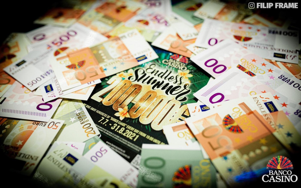 Každý deň od 7.7. – 31.8.2021 po príchode do kasína dostanete tombolový lístok, ktorý bude v osudí a medzi 19:00 a polnocou sa budú žrebovať mená prítomných hostí, ktorí si môžu denne vyžrebovať „banckovky“ v hodnote od 50€ do 500€!