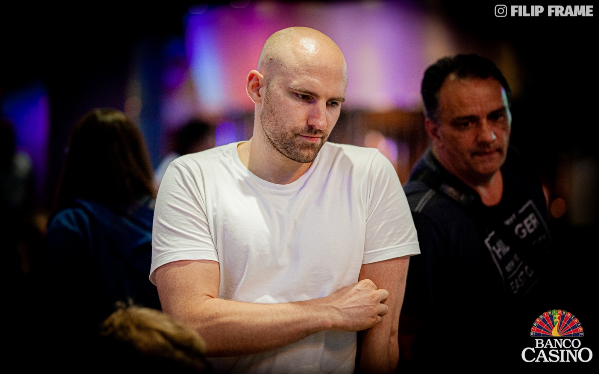 Bublina ako má byť, riadny setup sa odohral medzi Otom Bárczim a Marcom Leighebom, keď sa dostali do preflop all inu za 295,000, ktoré držal Bárczi. Oto otočil Qx Qx a Marco Kx Kx. Board 7x 5x Tx Jx Kx tak štýlovo ukončil flight 1B a hráči už bagujú svoje chipy.