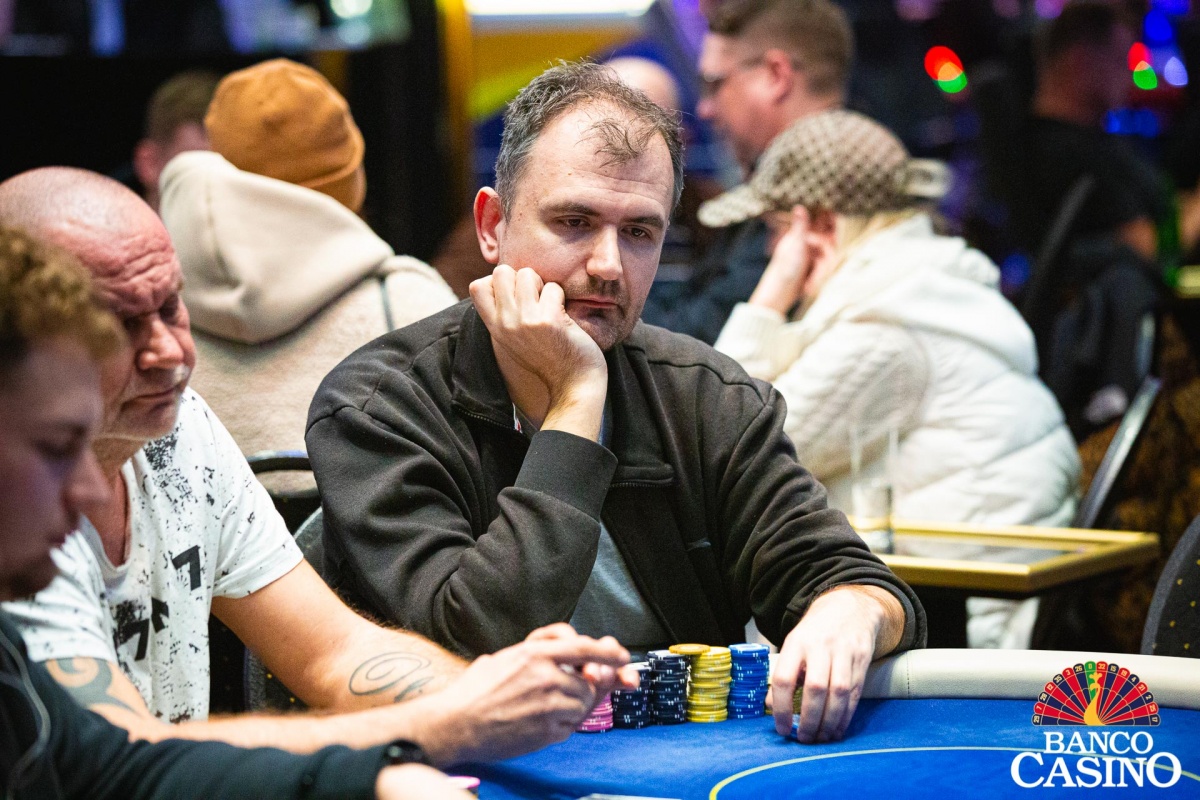 Janos Mate limpoval, Machalík raisoval na 2,000, dorovnali Špacír, Fazekas aj Carbonneaux. Maté sa pridal tiež a na flope Kd 9d 9c Jakub pokračoval za 3,000, ktoré zaplatil iba Carbonneaux. Na turne 7d Jakub pritláča na 10,000 a po niekoľkých minútach uvažovania jeho súper karty zahadzuje.
