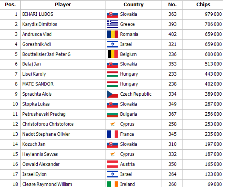 Flight 1E zaznamenal 178 entries a osemnástka ďalších hráčov sa pripojí do day 2. Chipleadrom tohto flightu je Lokšo, ktorý súperom pobral 979,000. Flight 1F- Turbo ma stále neskorú registráciu otvorenú až do 1:40 a turnaj v týchto chvíľach zaznamenáva overlay takmer 154,000€. Ak chcete zabojovať o časť z tohto giganticky dotovaného prizepoolu, môžete zvážiť nasledujúce možnosti. Flight 1G štartuje o 12:00, flight 1H o 17:00 a o desiatej večer Vás privíta flight 1I – Turbo. Pre viac informácií sledujte náš web a sociálne siete. Tešíme sa na Vás !