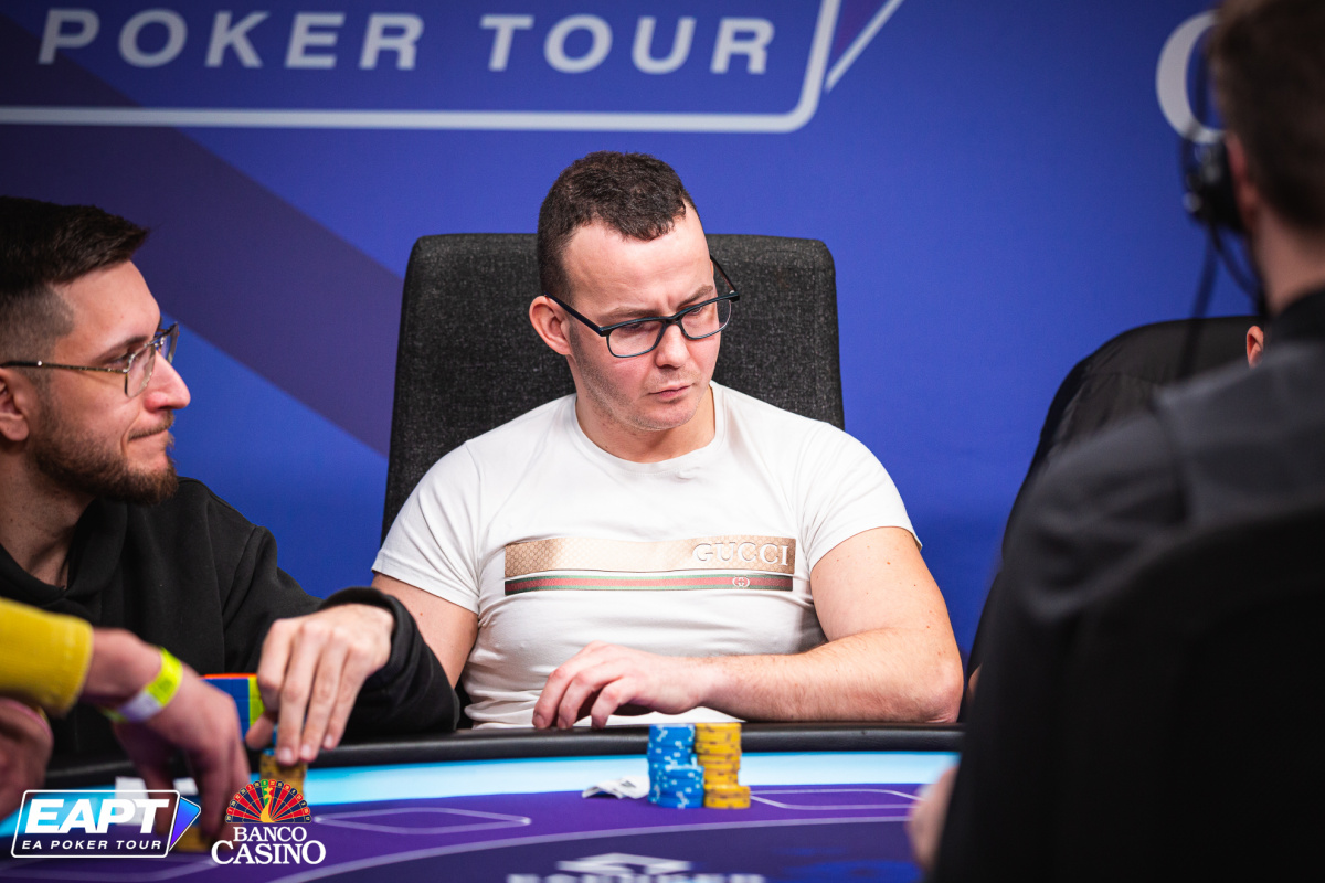 Alina otváral na 40,000, Filip zo sb posunul za čiaru svojich 235,000 a z bb Fraczek rejamol 345,000 a Alina karty zahodil. Filip otočil Ax Qx, Fraczek Ax Kx a po boarde Qx 5x Jx 6x 4x tak Lukasz padá na asi 100,000, ktoré skončili za čiarou hru potom so šestkami proti Ax 5x ktoré držal Szabo. Po boarde Qx Tx Jx 2x Ax tak Lukasz prišiel o poslednú nádej a z Main Eventu vypadáva.