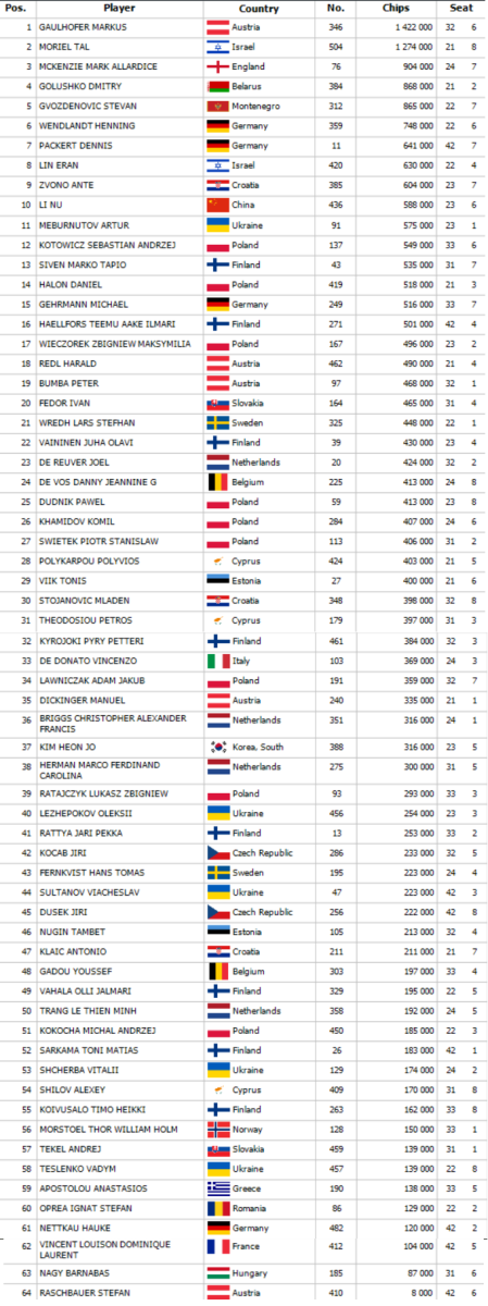 Final table chipcounts: