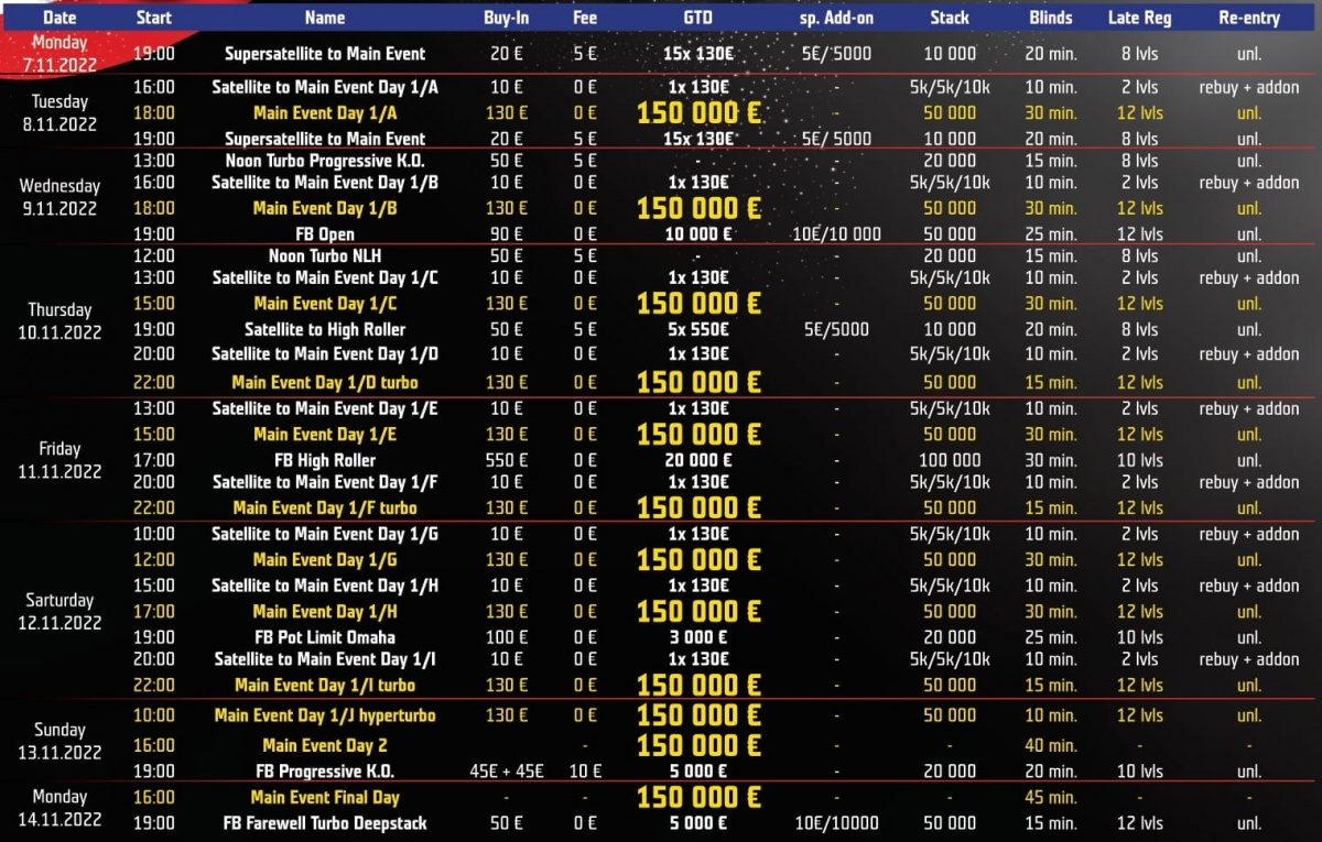 12x 130€ ticket to France-Benelux Masters ME 150.000€ GTD included in the prize pool