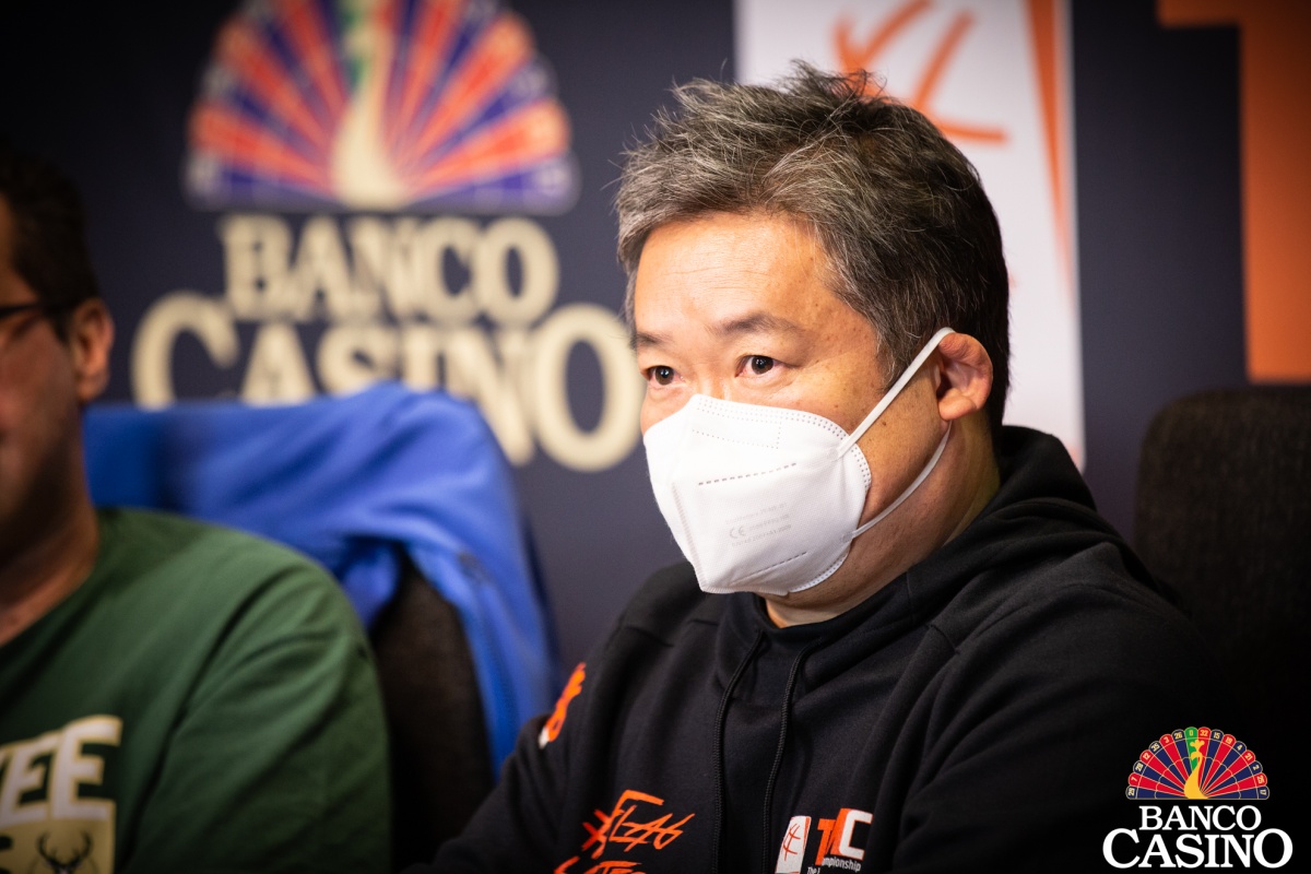 Dmytro otovirl na 1,300,000 z buttonu a dorovnal Katsuhiro na bb. Flop 7c 3c 8d c-betol Dmytro za 1,300,000 a Katsuhiro dorovnával. Turn 4h aj river Ks obaja checkli, Katsuhiro ukazuje Ts 9s, ale na Ax Jx nestačí a Dmytro si pripisuje ďalší pot.