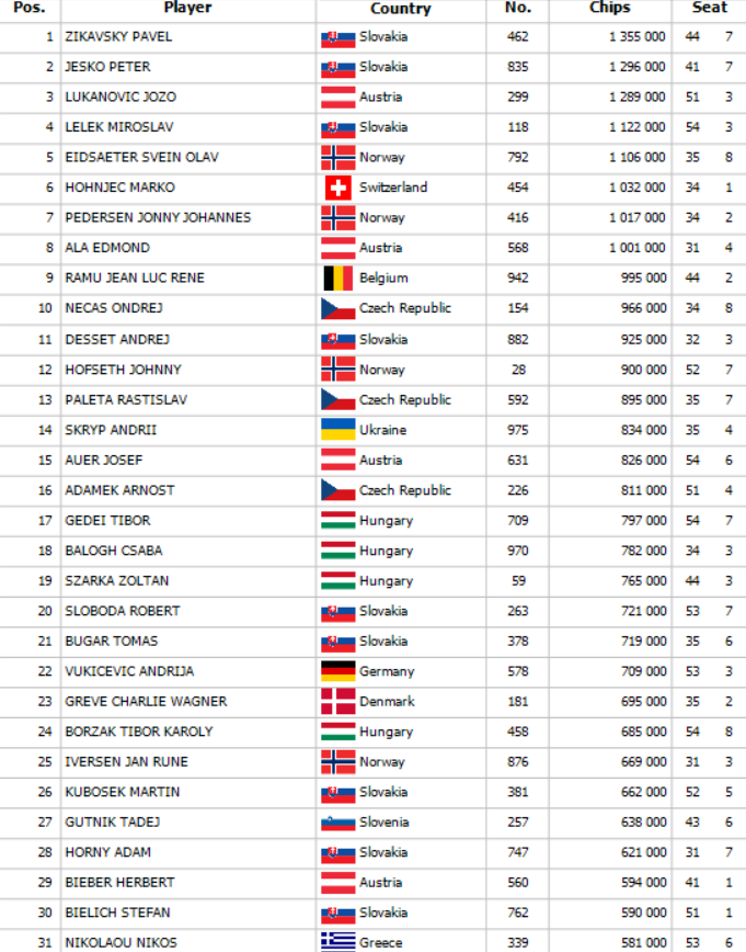 Poker Belgique Masters ukončil svoj day 2 a z 97 hráčov sme spoznali posledných 16, ktorí sa stretnú v zajtrajšom final day a rozhodne sa kto si odnesie 40,975€. Ako chipleader sa predstaví Zoltan Szarka , ktorý pozbieral stack 8,040,000. Final Day sa začína o 16:00 a bude možné ho sledovať v našom Live Reporte. O 19:00 sa začne PBM Farewell Turbo Deepstack 5,000€ GTD. Tešíme sa na Vás !