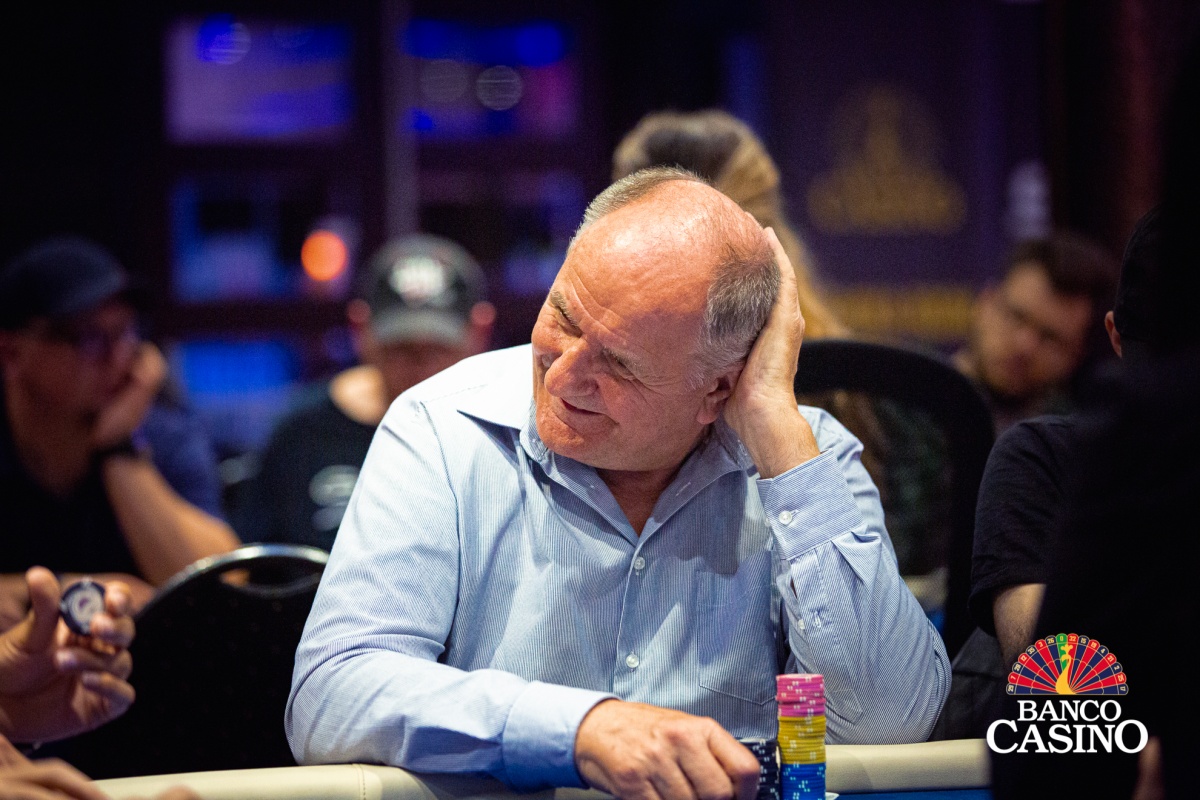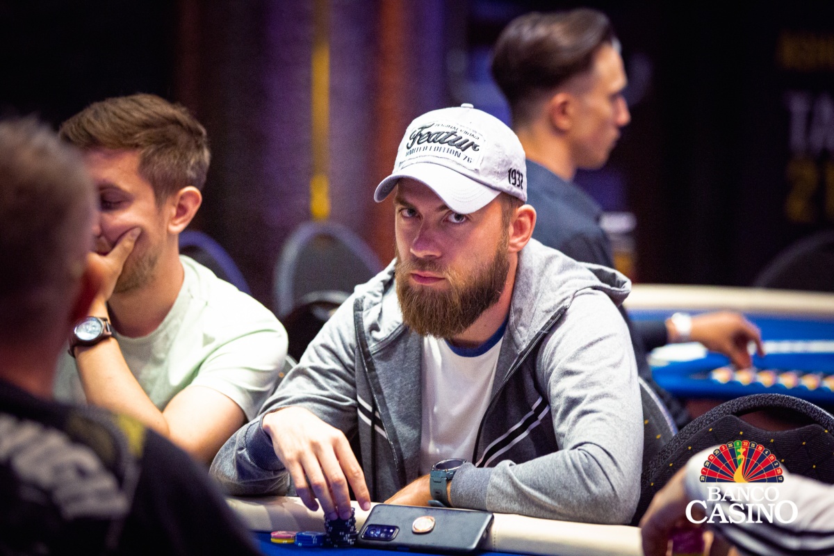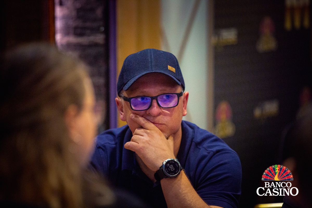 Na turne Qs 7s Kd Td je v pote asi 100,000 a Ziolkowski betuje rovnakú sumu. Dimitrios Nanos premýšľa dlhé tri minúty, až je naňho uvalený time. Floorman mu pomôže odpočtom a v približne polovici Dimitrios zahodí face up Kx. Maciej otočí Jc a pot vyhráva. Dimitrios v nasledujúcej hre vypadol a od konca flightu nás delia dve eliminácie.