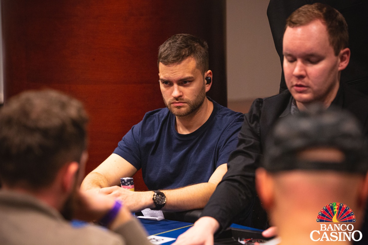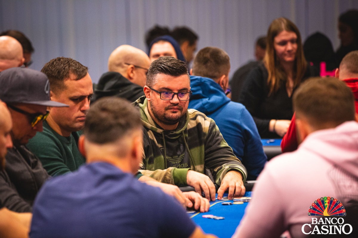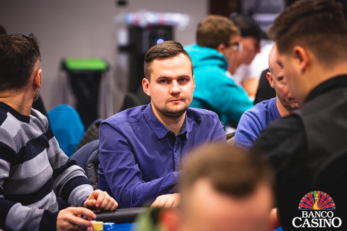 Na flope 8h 3h 5c bolo v pote 65,000 aKrzysztof Juskowiak poslal z prvej jeho 98,000. Dymnicki dorovnal asi 40,000 s Kh 9h, Lachowski svoj short dorovnal s 5x 5x. Juskowiak drží deviatky a po turne 9x a rivri Tc vyradil oboch súperov naraz.