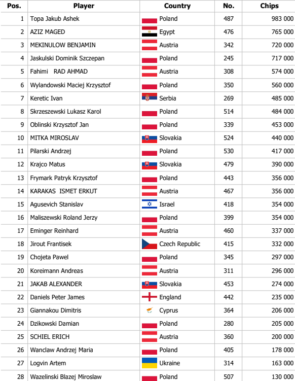 Grzegorz Borowski dostal svojich 471,000 do hry s Qx Jx. Do cesty sa mu postavil Jakub TOpa, ktorý ho o kúsok porkýval. Board Ax 6x Kx 9x Ax podržal lepšiu kombináciu a flight 1C sa tak skončil.