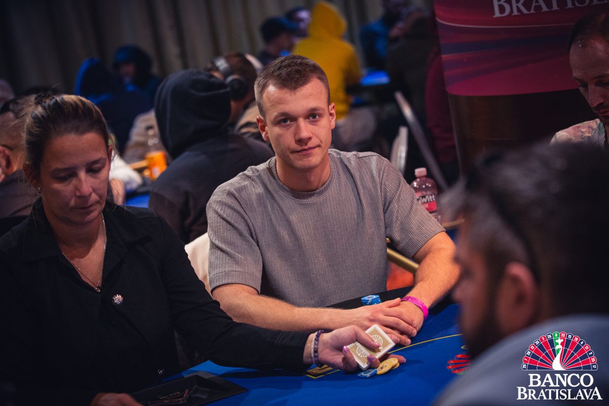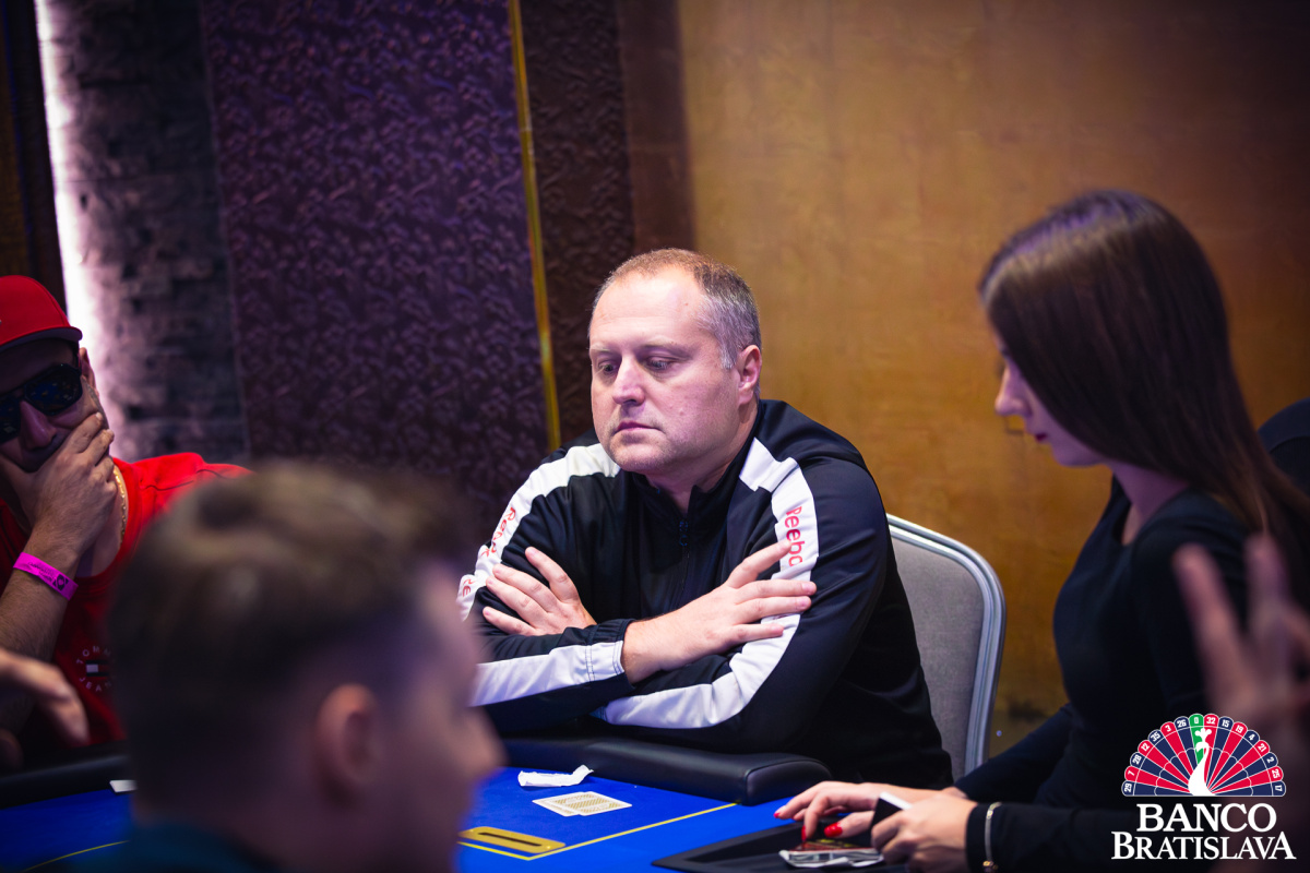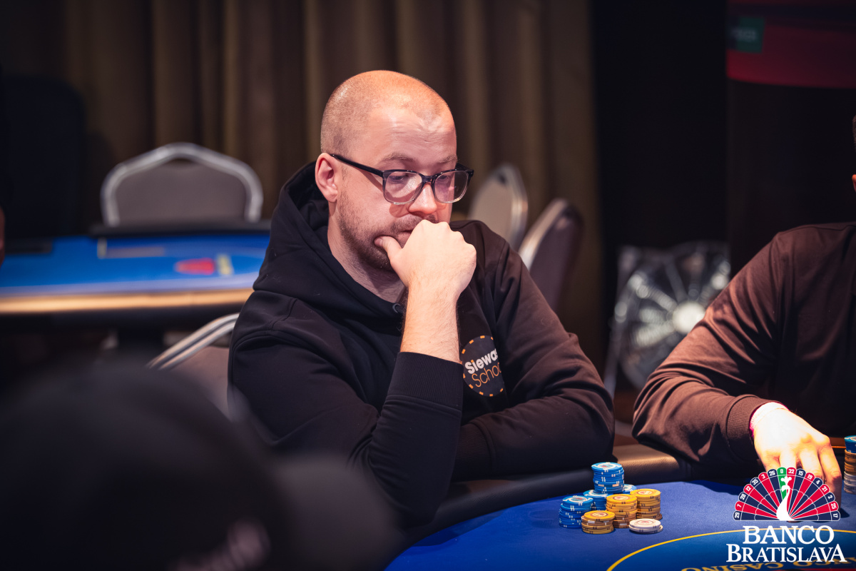 Svoboda otvoril z Ep a dostal call od Orzechowského na big blinde. Na flope prišlo Tx 8x 7x a nasledoval c-bet od Čecha, na ktorý Poliak odpovedal all-inom za 21bb. Po chvíli premýšľania Tomas dorovnal a ukázal AT. Poliak držal K7s s flushdraw, ale dealer nič nedotiahol a pot vo výške 17,500,000 putoval k Svobodovi, ktorý má teraz 28,600,000.