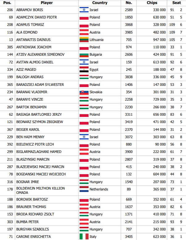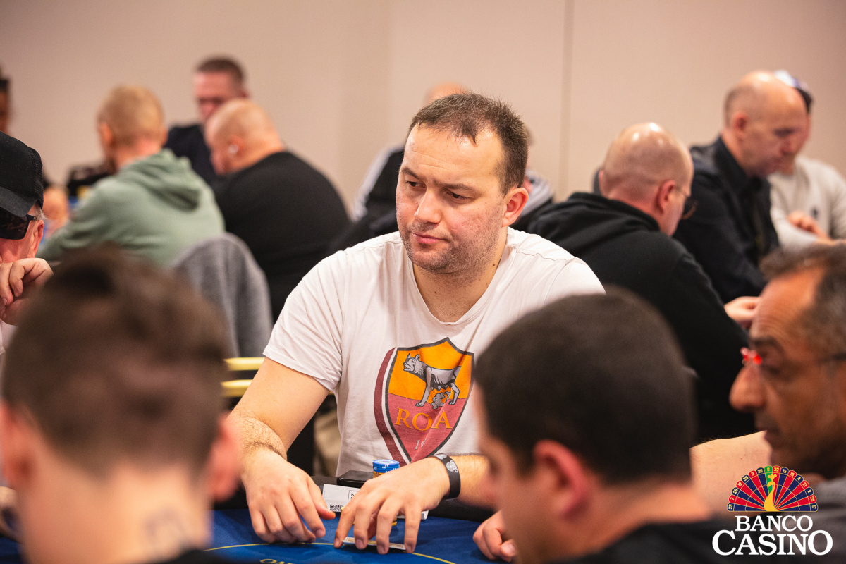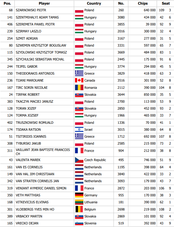 Piotr sa dostal za asi 8,000,000 do preflop all inu s Ax Qx proti sedmičkám, ktoré držal Marek Halko. Po boarde Kx 3x 5x 5x 3x si tak Marek pripísal potrebný double up. V nasledujúcej hre Piotr poslal do hry asi 1,500,000 ktorý mu zostal a Matyási aj Catalin dorovnali. Board Qx Ax Jx 9x Jx bol checknutý až na river, kde Matyási betoval, ale Catalin okamžite zahodil. Lajos otočil Qx Jx a Piotr v jeho poslednom showdowne otočil Tx 9x a spájame sa na neoficiálny finálový stôl.