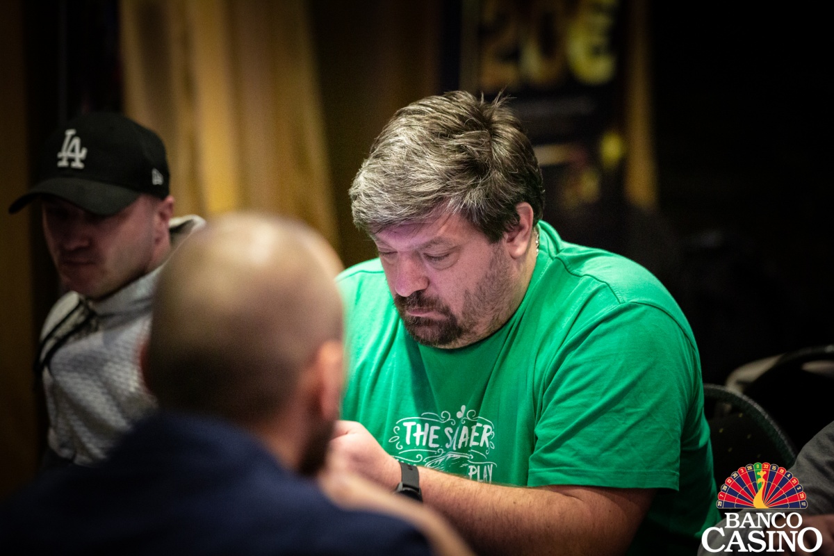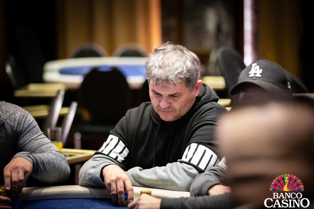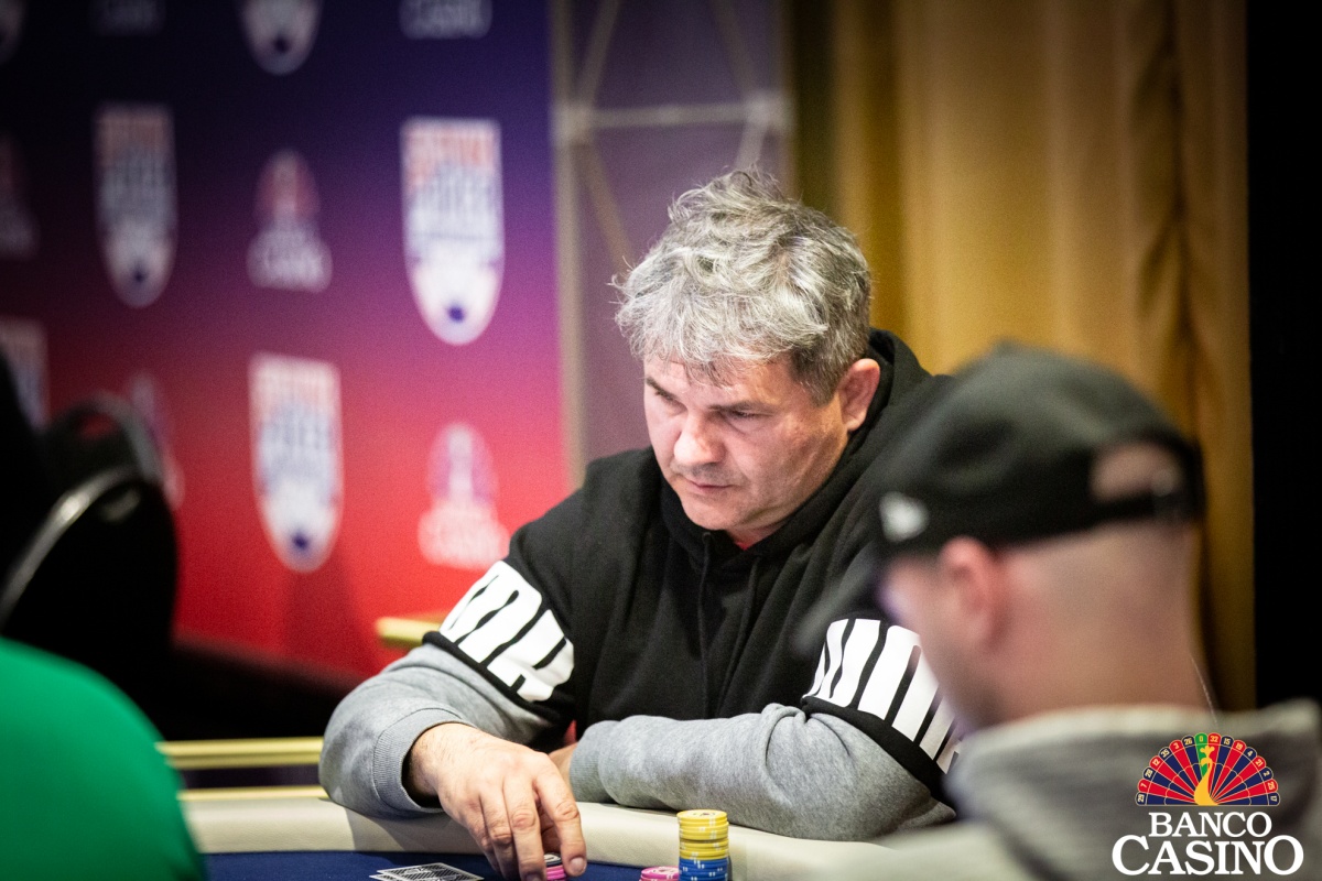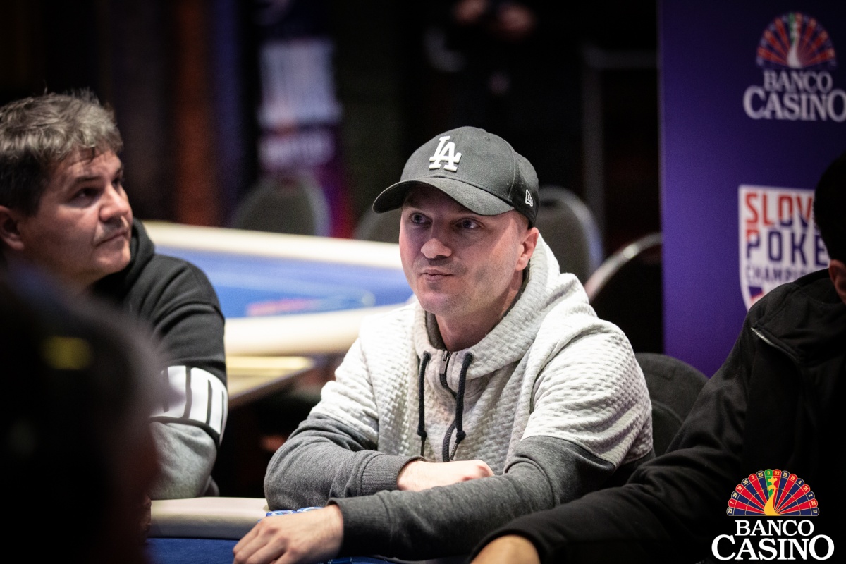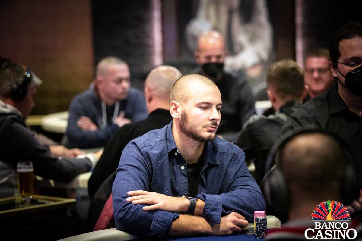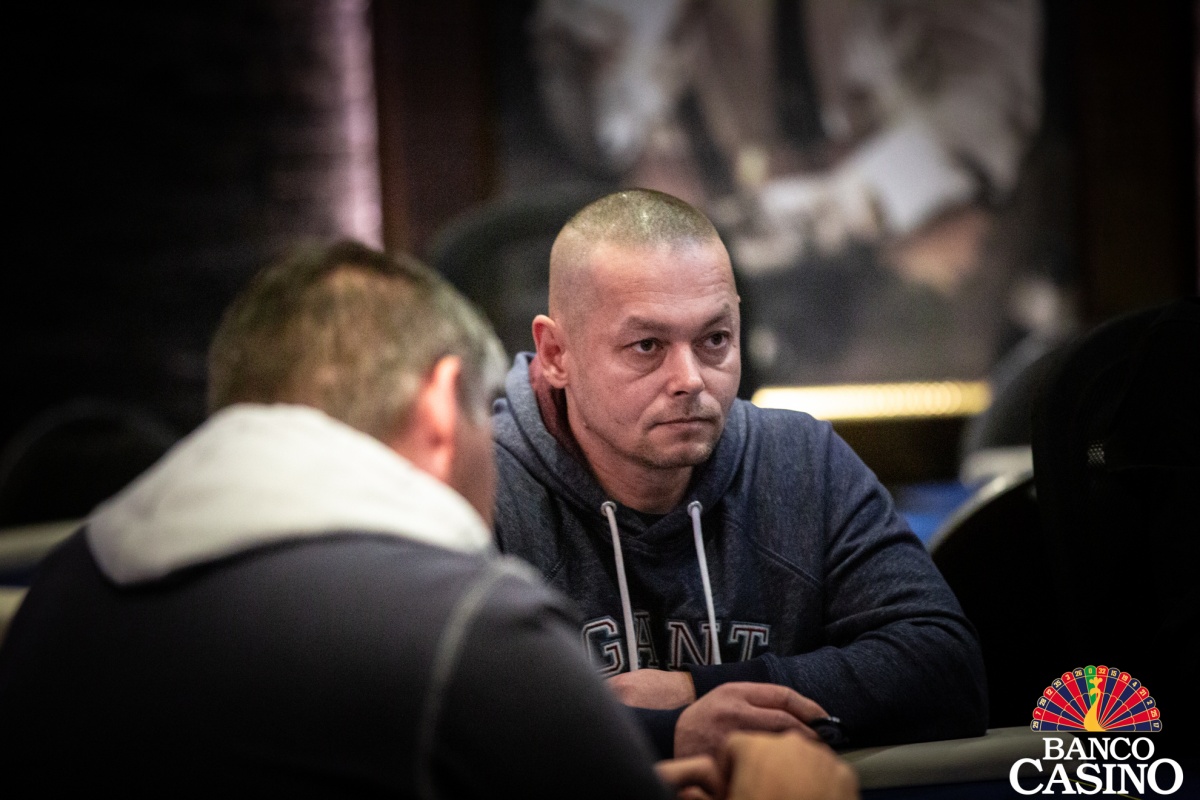 Po troch limpoch sa Attila Almási rozhodol pre raise na 2,500, Olešňan z buttonu dorovnal a Ferenc zo sb 3-betoval na 10,500. Dorovnal iba Almási s Olešňanom a na flope Qs 3h 2d betuje Ferenc 13,000. Almási po minútke zahadzuje. Olešňan premýšľa ešte dlhšie a nakoniec vystaví Ferenca all inu v hodnote asi 40,000. Ten sa kariet okamžite zbaví.