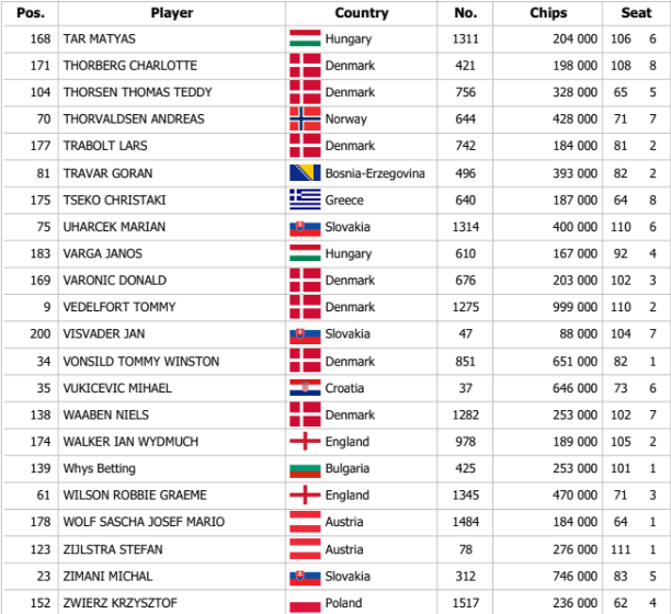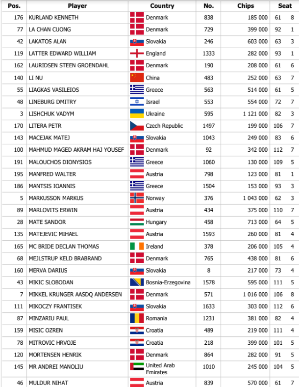 Vadym otváral na 160,000, Lakatoš dorovnal a Kurland sa z bb pridal. Na flope 5d 4d 2h betoval Vadym 200,000, Lakatoš zahodil a Kurland poslal do hry necelých 600,000 s Ad 8x.Vadym otočil trojky a turrn Td s riverom 5c vyradili Kennetha z turnaja.