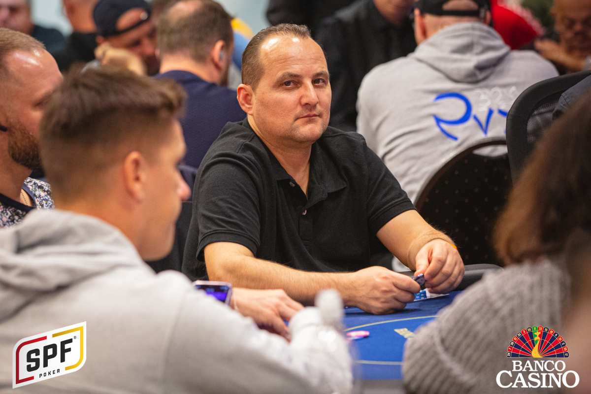 Csaba posunul svojich 147,000 za čiaru s desiatkami a Tibor Hoffman po tradičnej, no nepotrebnej meditacií dorovnal z bb s Ax 6x. Po boarde Kx 7x 7x Ax 7x Csinos končí na bubline a hráči balia svoje chipy do zajtrajšieho day 2.