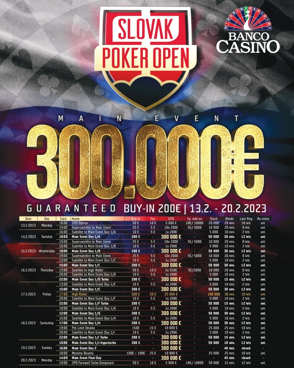 Kompletný rozpis Slovak Poker Open 300,000€ GTD :