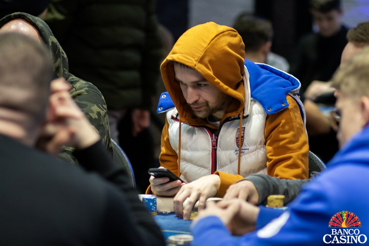 Pantinchin, Baranai a Matsiz sa dohodli na sume 1,200 pred flopom. Flop 6c 5c 6h priniesol bet 2,000 od Baranaia, Matisz dorovna a Pantinchin zahodil. Turn 9d priniesol ďalší barel za 2,700 od Barnaaia a Matisz znova dorovnal. River Th sa checkoval, Baranai otočil 9s 8s, ktoré stačilo na Kc 4c u Matisza.