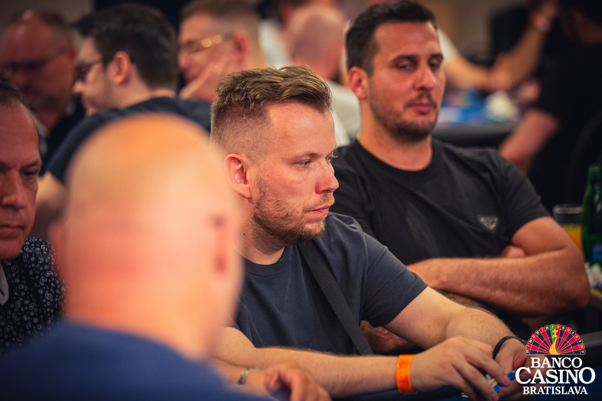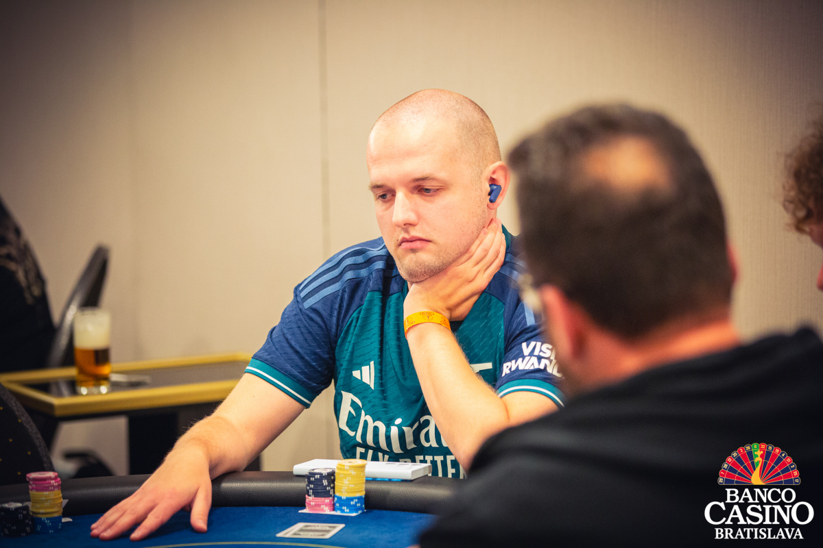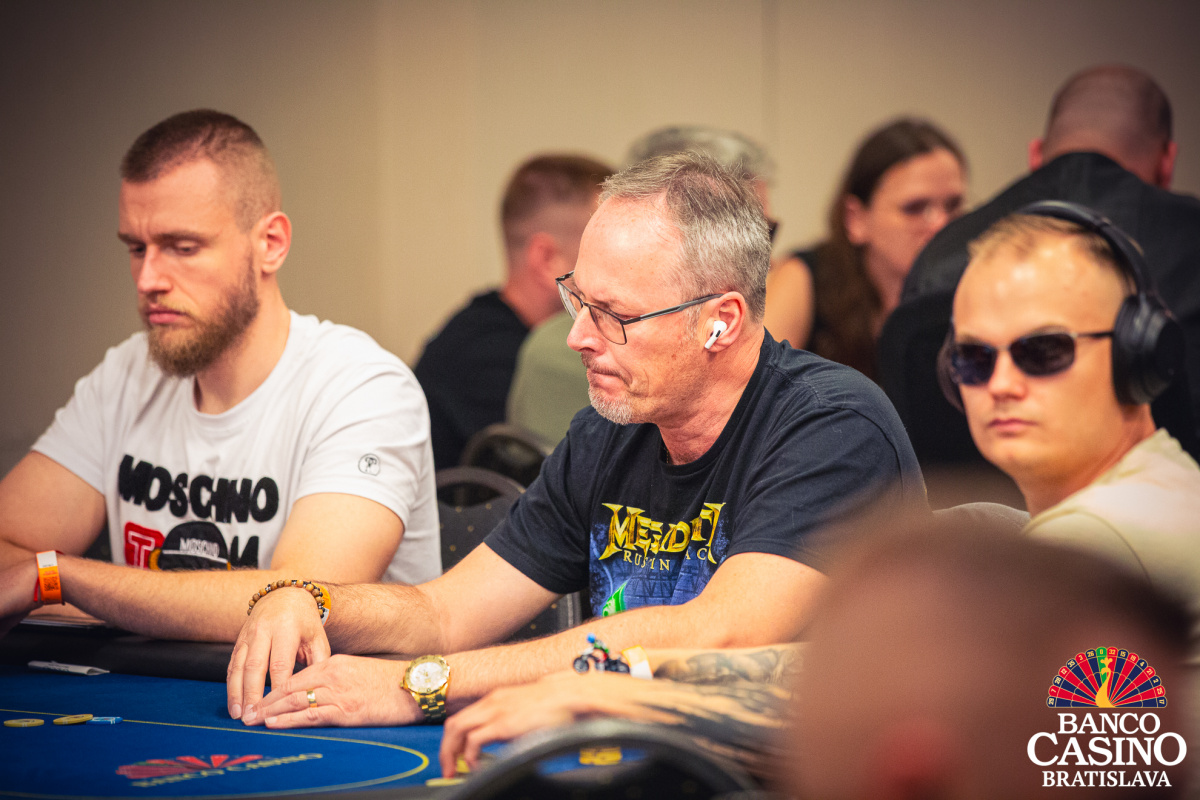 David sa dostal do preflop all inu s Qx Qx proti desiatkam, ktoré držal Jan Wilam. Po boarde 4x Kx Kx 7x 2x si tak David pripísal na konto potrebný double up.
