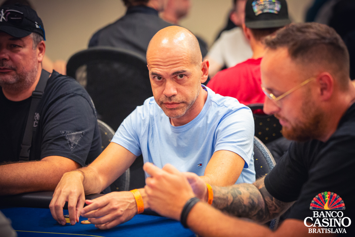 Slawomir Malek z Ep otváral na 10,000 a Csaba z bb dorovnal. Na flope Ad 6d 9c betoval Slawomir 10,000 a Csaba sa rozhodol pre raise na 27,000. Malek dorovnal a na turne 7h Csaba betoval 43,000. Malek zahodil face up Jx Jx.