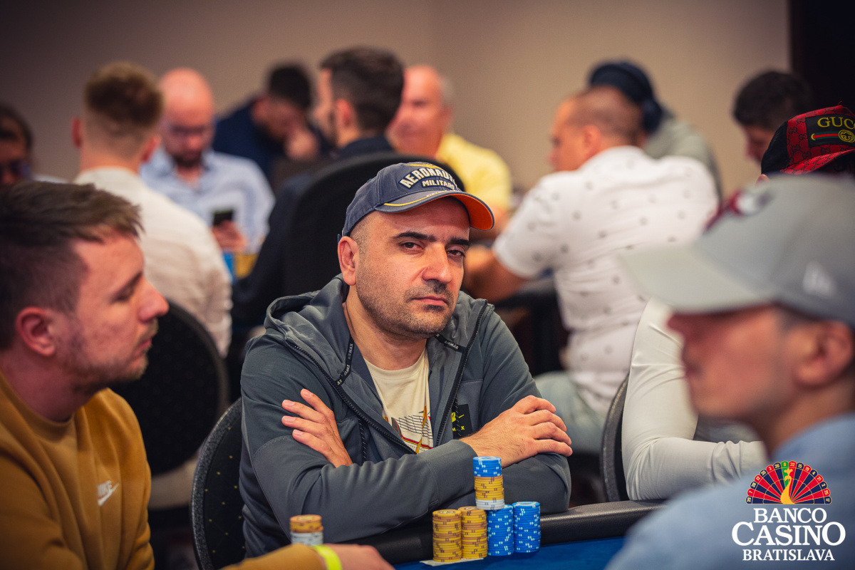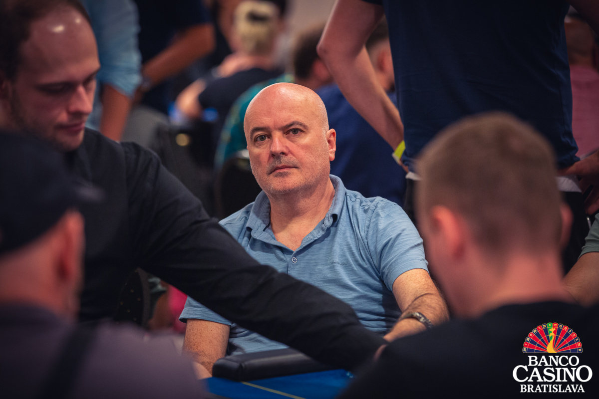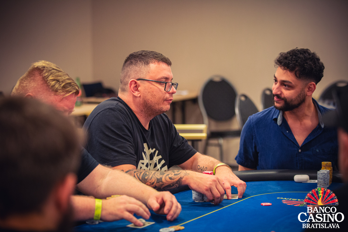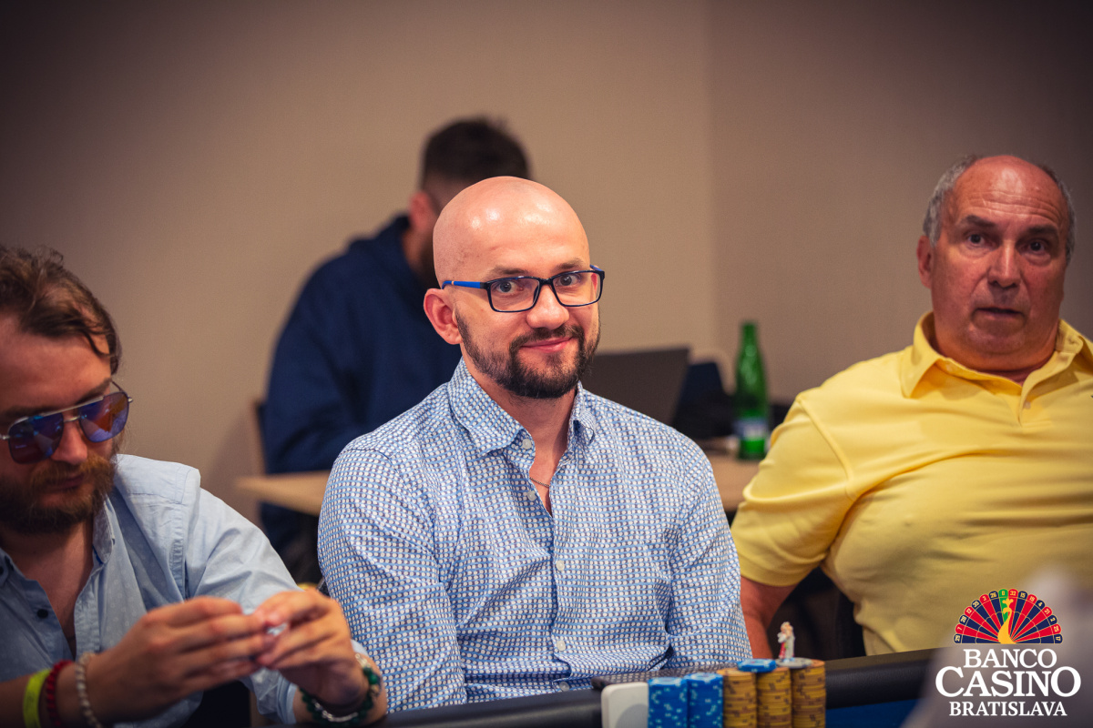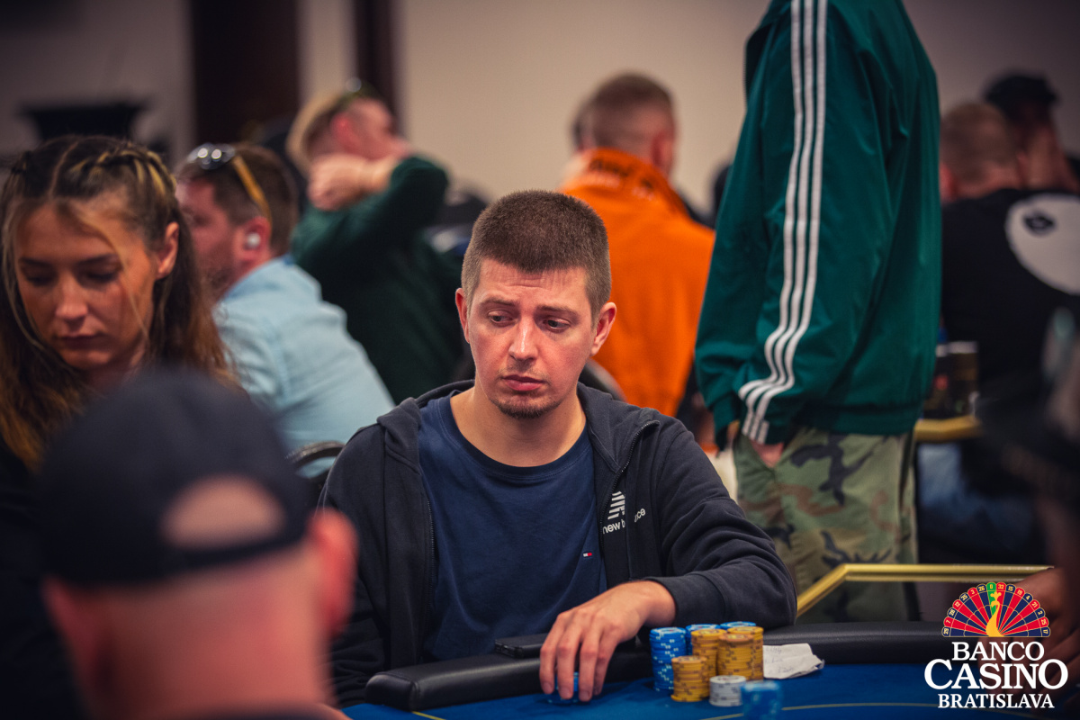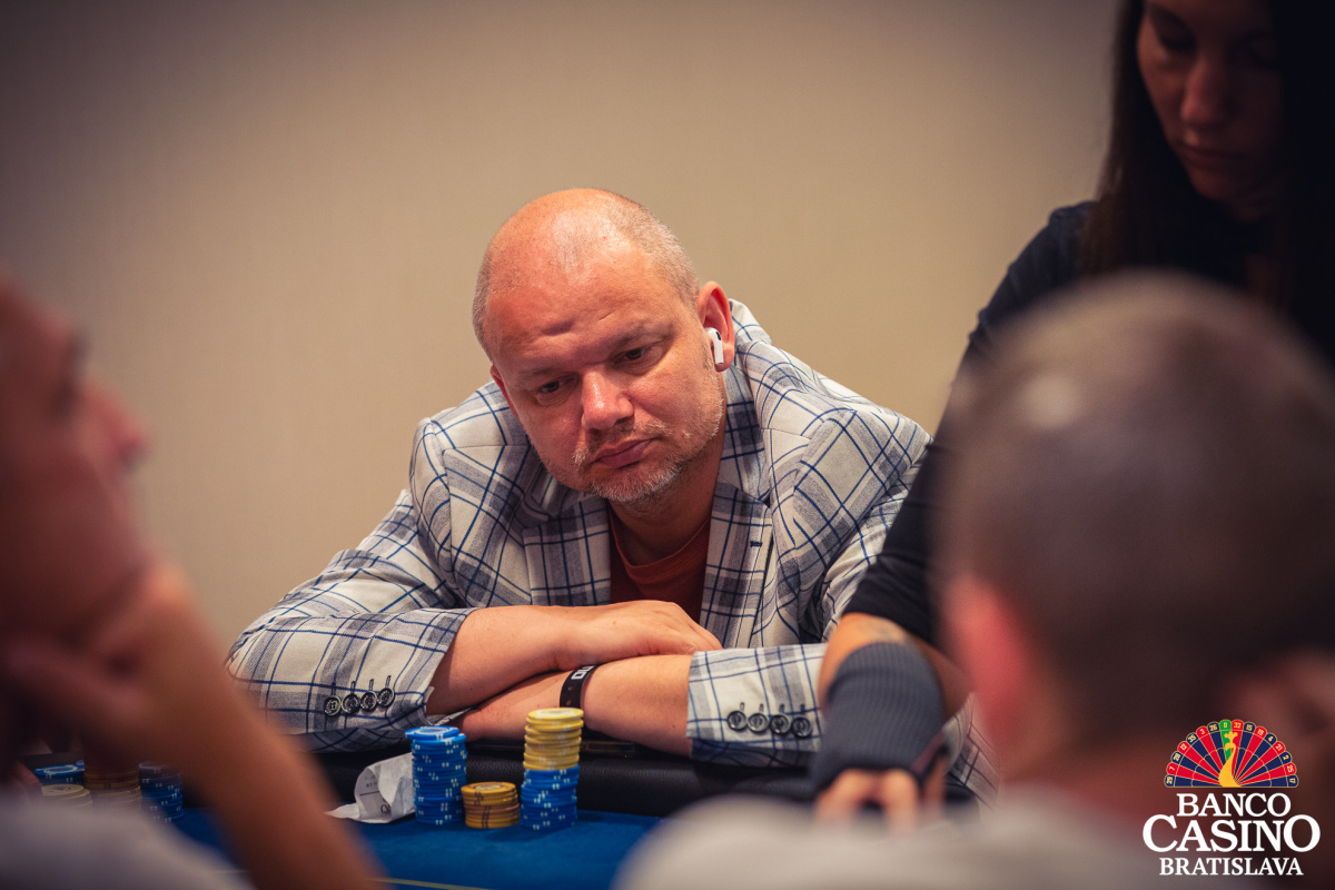 Vlado otvoril na 40,000 z Ep, Florian Nolz dorovnal a Jacek Sygrela zo sb zahlásil all in 166,000. Vlado repushoval asi 400,000 a Nolz karty zahodil. Jacek otočil Kx Kx a Vlado Qx Qx. Po boarde Ax 2x 8x 3x 6x sa nič na rozpoložení síl nezmenilo a Vlado takmer polovicu stacku odovzdal súperovi.
