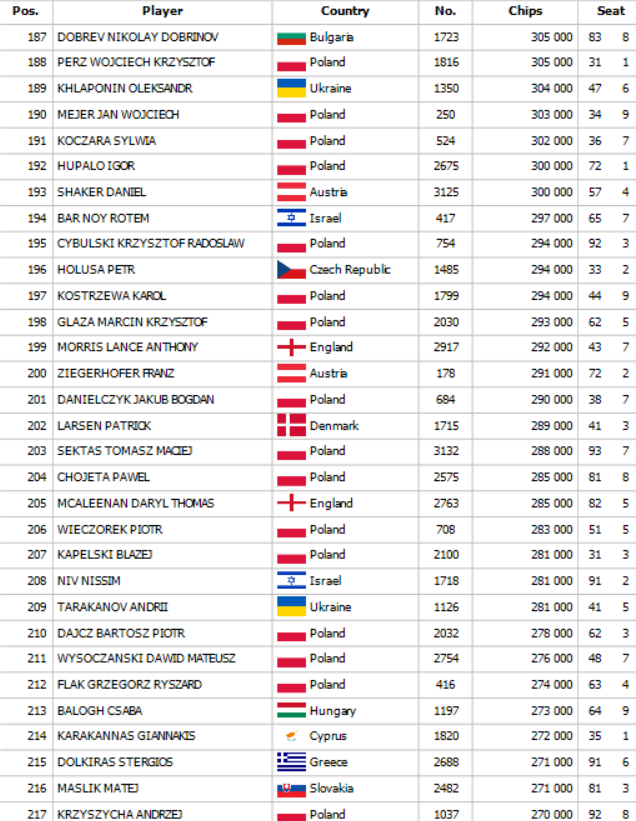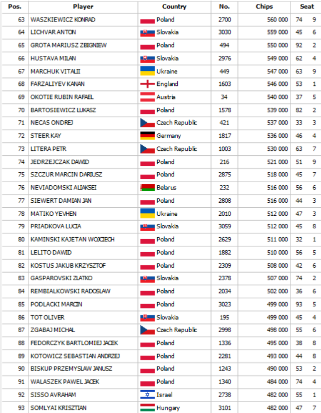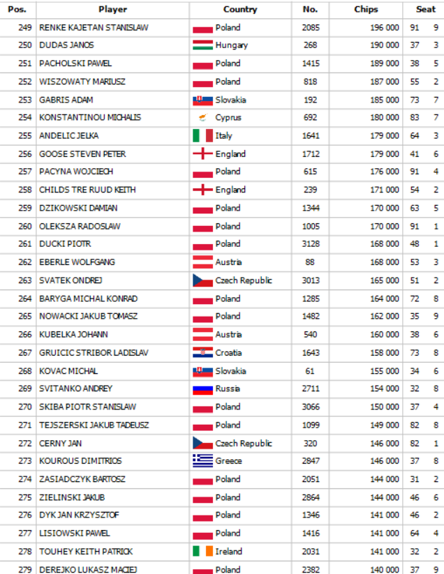 Final Day chipcounts: