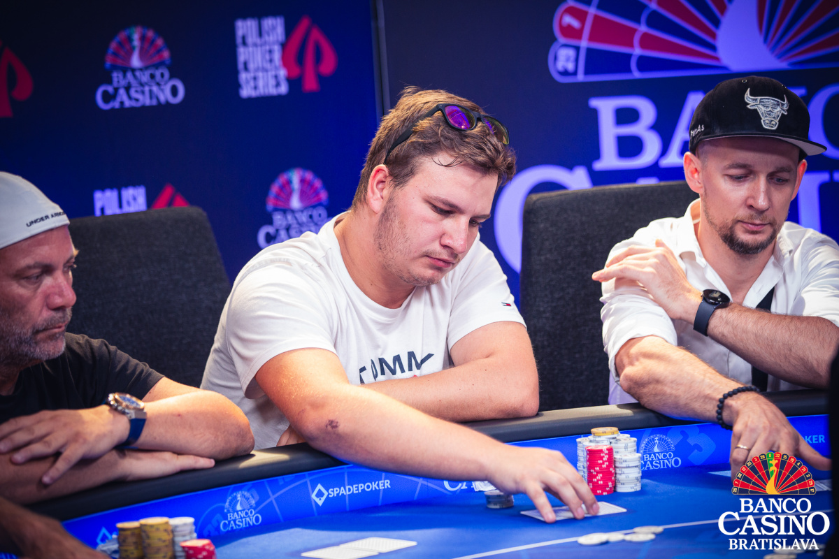 Nečas pushoval 8,100,000, Lester dorovnal a Maksym rejamoval 23,000,000. Lester si nechal stack prepočítať, ale nakoniec sa rozhodol zahodiť. Maksym držal Ax Qx a Ondrej Ax Jx. Po boarde Kx 5x 3x Qx 9x je tak pre Ondreja určené piate miesto a 13,275€