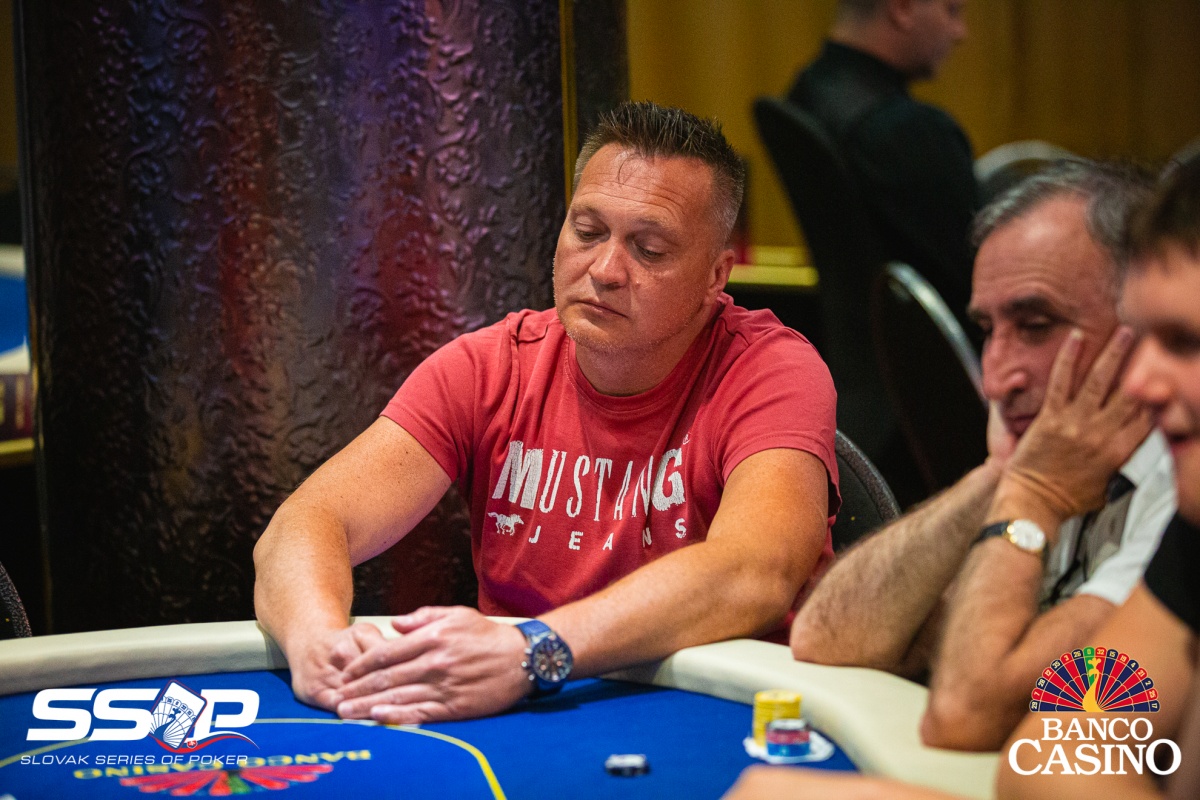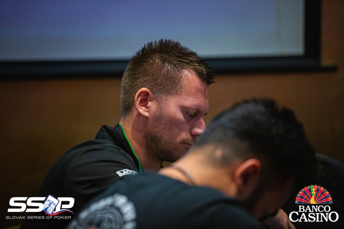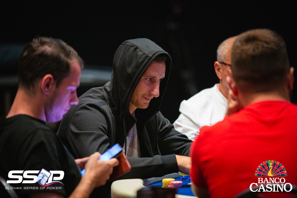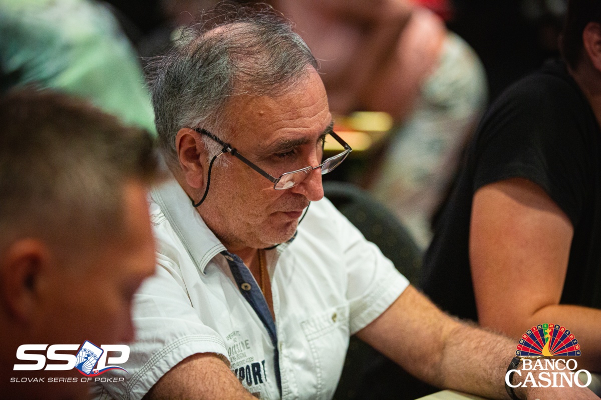 Gejza poslal svojich 2,400 za čiaru z Ep, dorovnal Kalis a Jusufi, Vlado zo sb 3-betol na 9,000, čo obaja zaplatili. Na flope Th 4h 4x betol Vlado 15,000, ale aktívni súperi karty zahodili. Gejza otočil 9x 8x, Vlado však držal esá. Turn Ax aj river Ax tak Gejzu štýlovo vyprevadil.