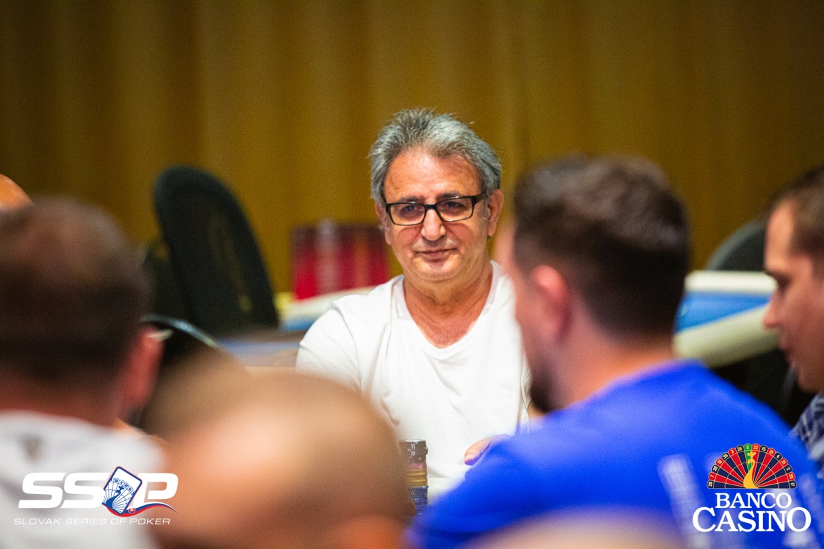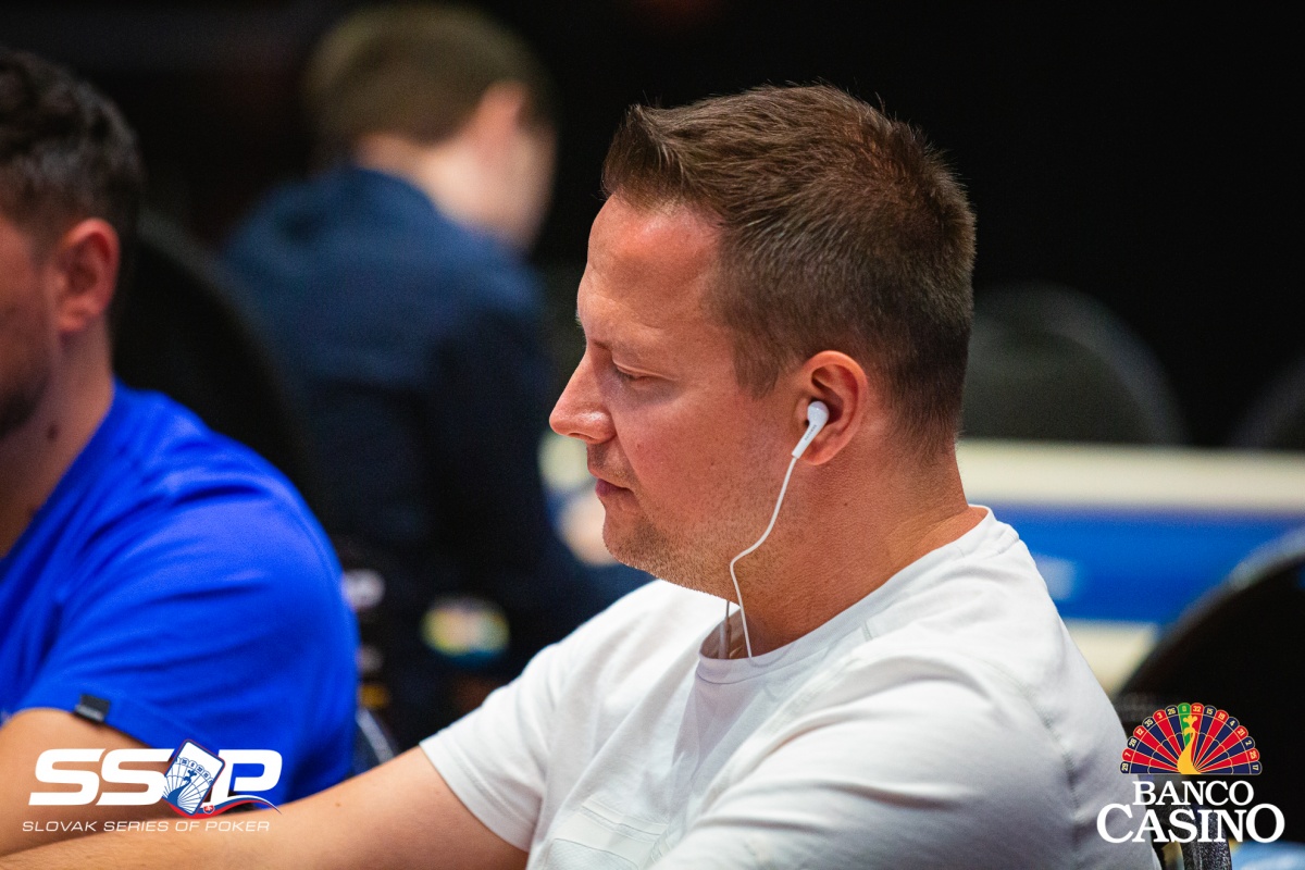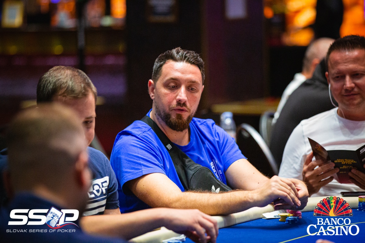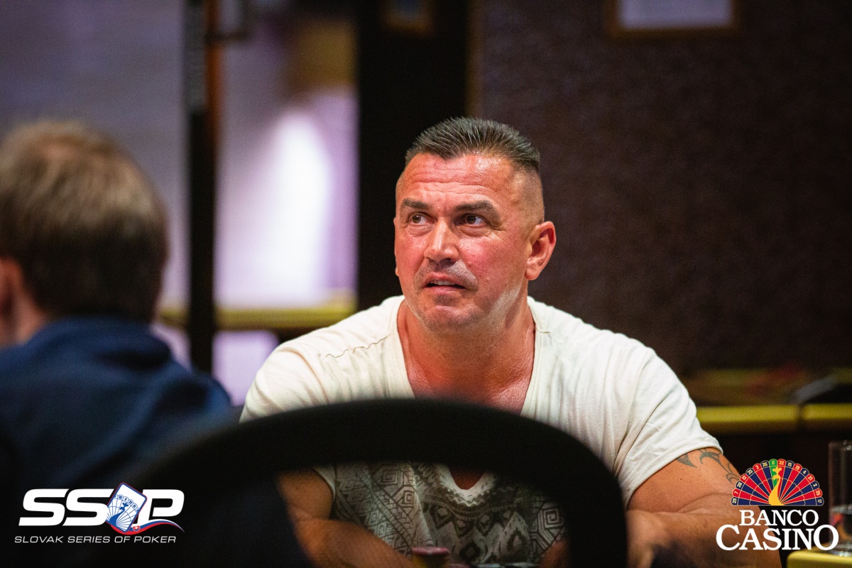 Gejza poslal svojich 2,400 za čiaru z Ep, dorovnal Kalis a Jusufi, Vlado zo sb 3-betol na 9,000, čo obaja zaplatili. Na flope Th 4h 4x betol Vlado 15,000, ale aktívni súperi karty zahodili. Gejza otočil 9x 8x, Vlado však držal esá. Turn Ax aj river Ax tak Gejzu štýlovo vyprevadil.