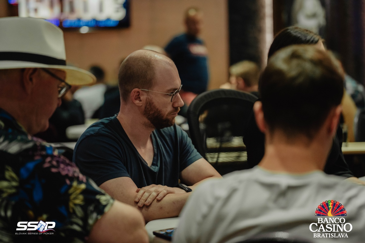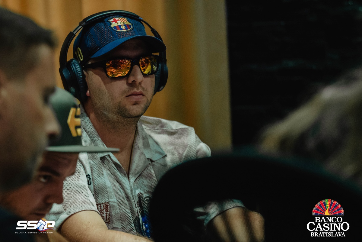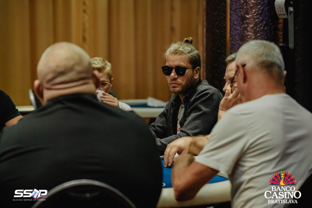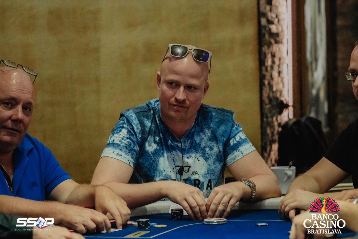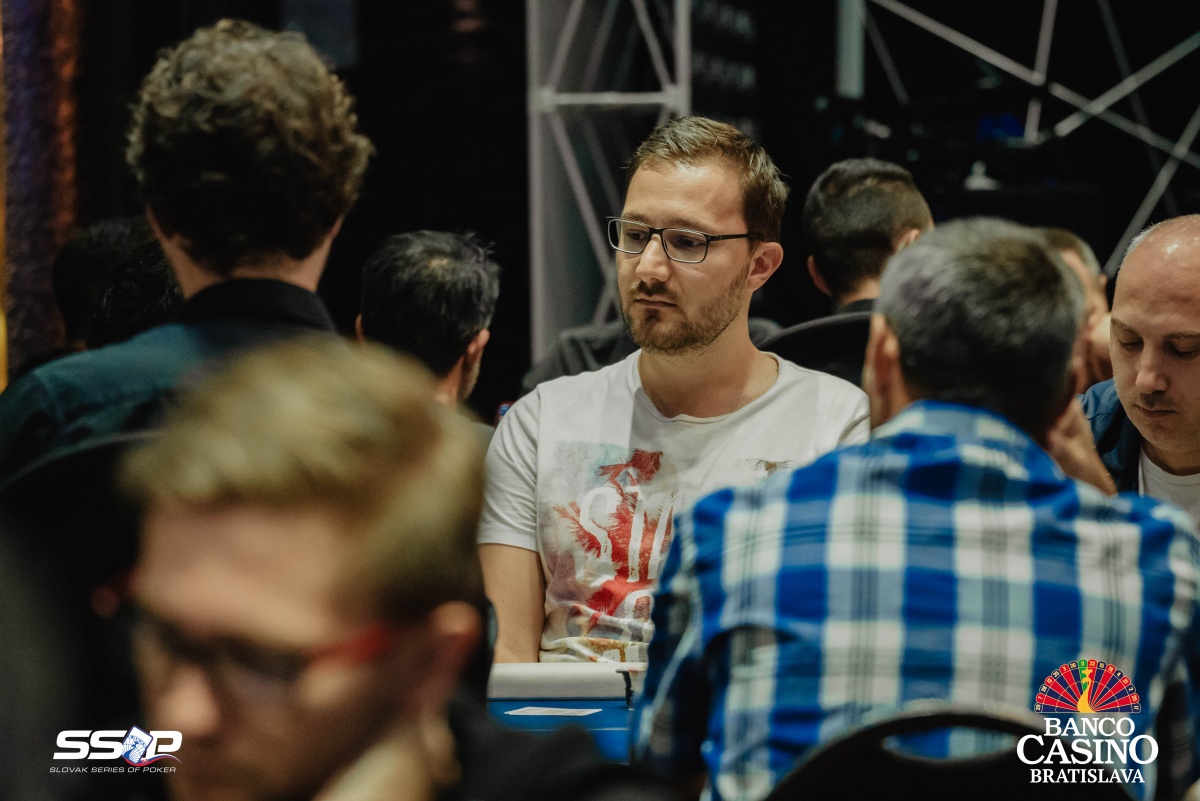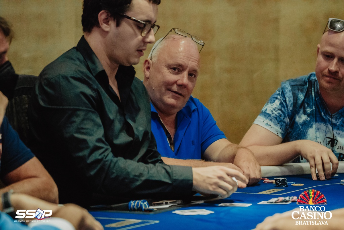 Sebastian si otvoril na 2,000 a dorovnával Riczák na druhom konci stola a Tsenov z blindov. Flop Ah Td Js ocenil Sebastian na 3,500, Riczák dorovnal a Tsenov sa pustil. Turn 5s priniesol bet za 10,500, ale Michal zahodil.