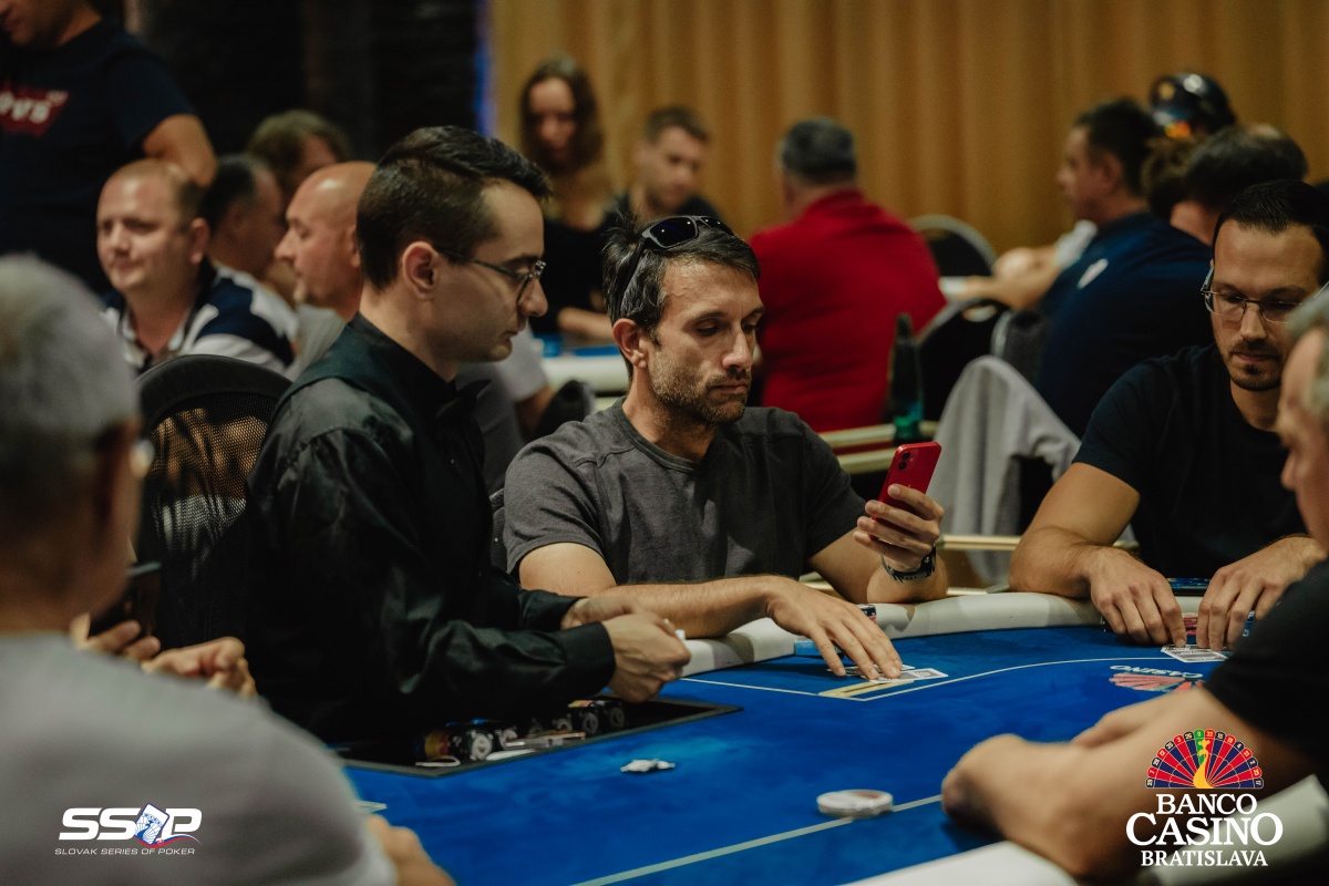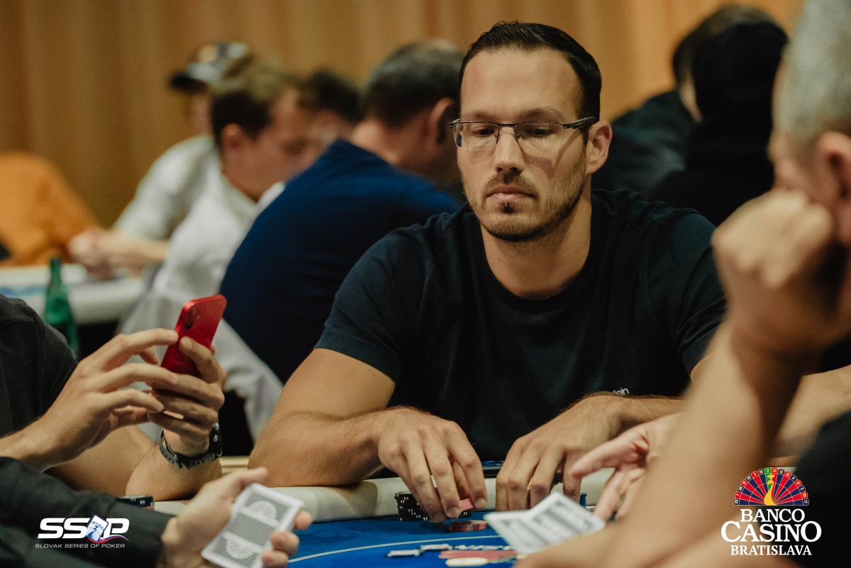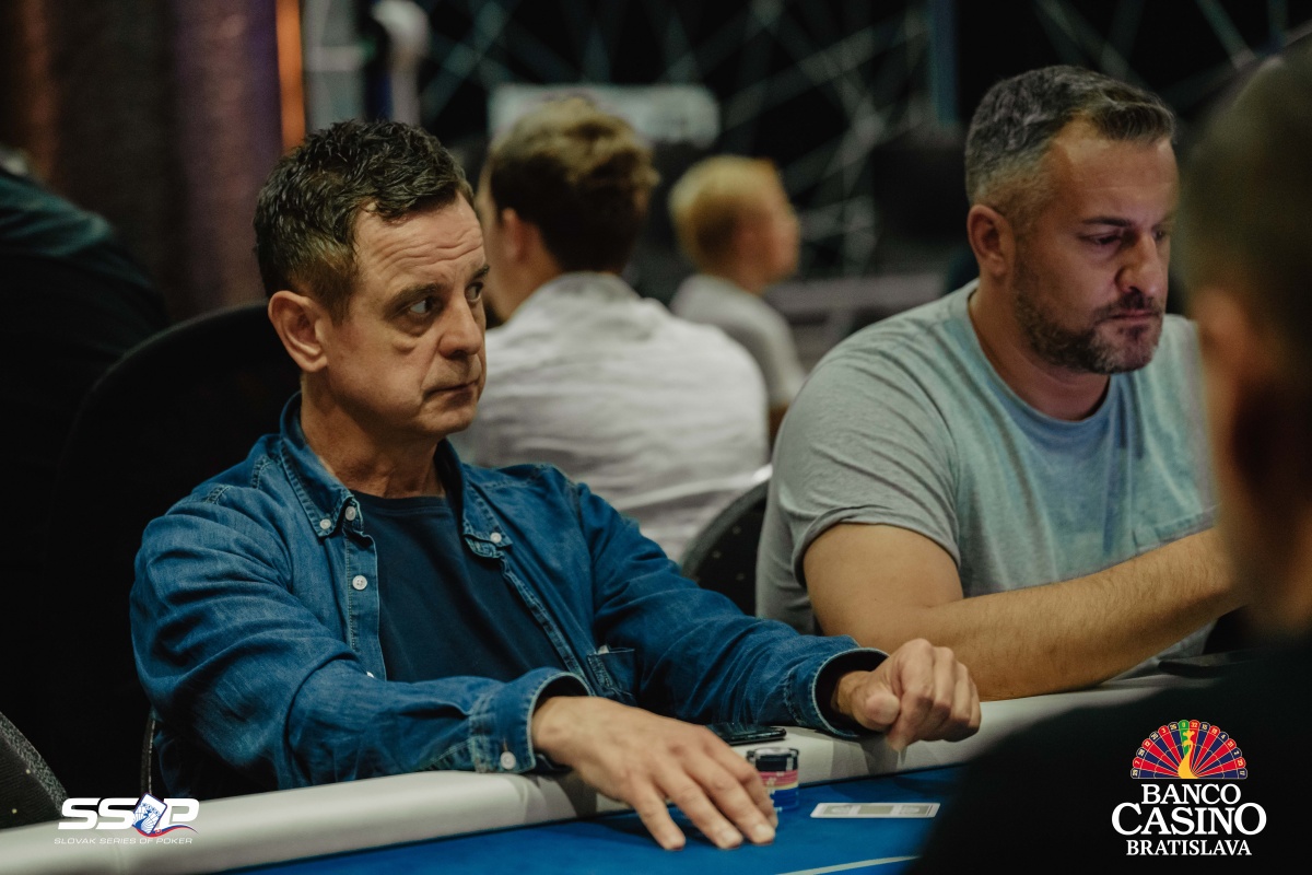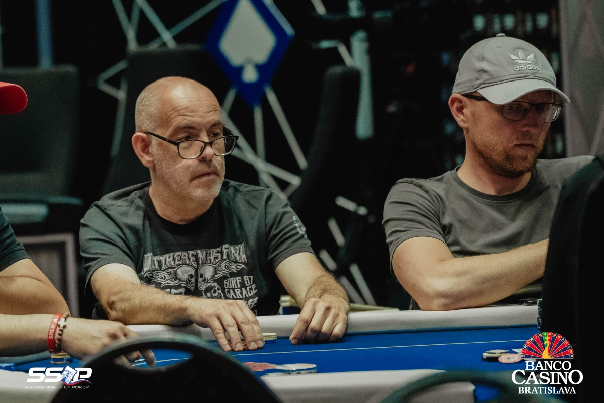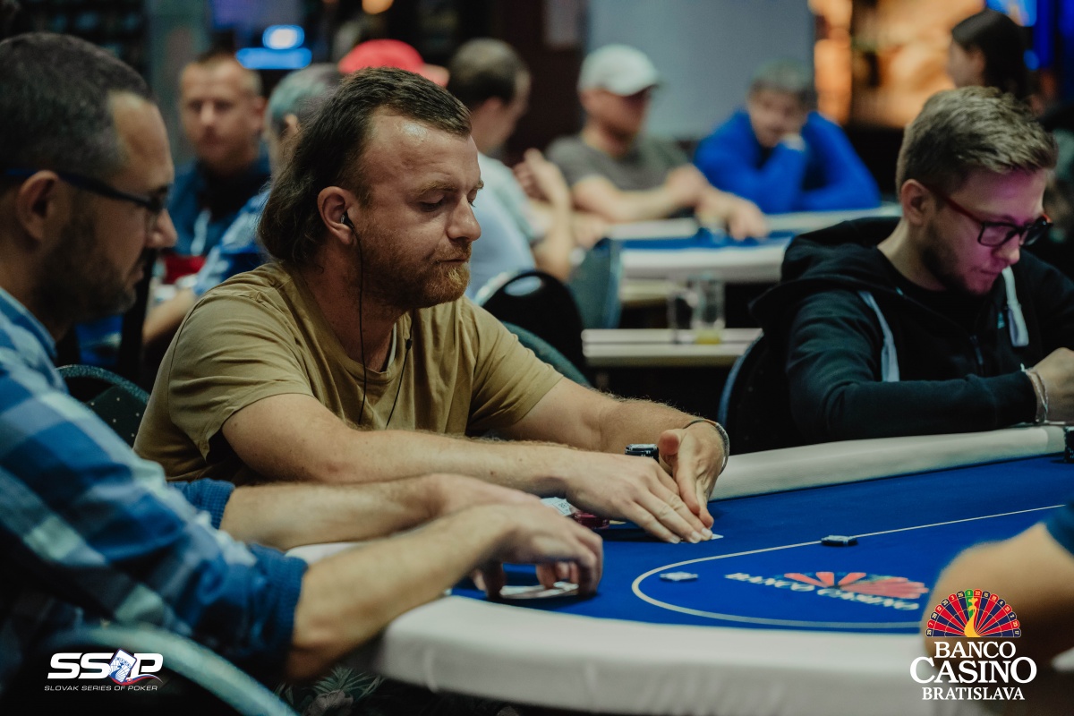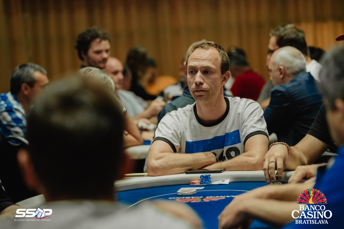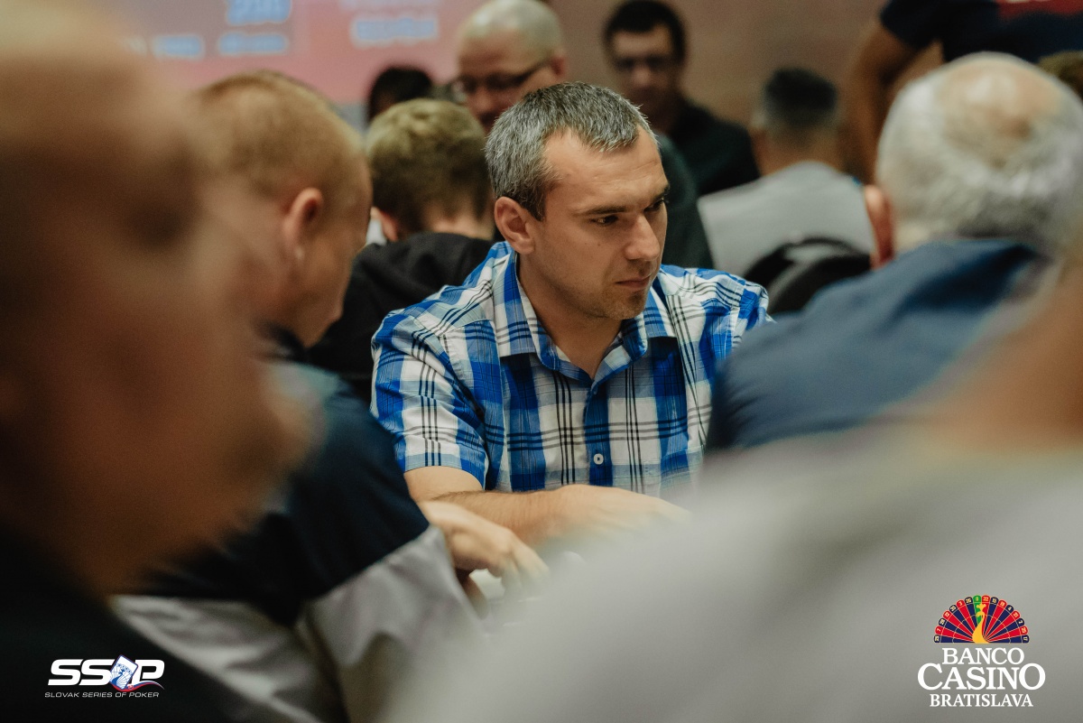 Sebastian si otvoril na 2,000 a dorovnával Riczák na druhom konci stola a Tsenov z blindov. Flop Ah Td Js ocenil Sebastian na 3,500, Riczák dorovnal a Tsenov sa pustil. Turn 5s priniesol bet za 10,500, ale Michal zahodil.