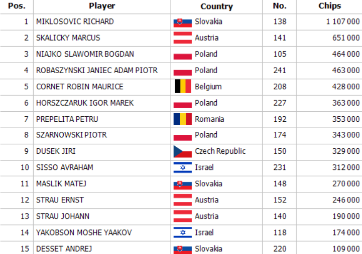 Rišo Miklošovič zahlásil zo sb all in s Ax 3x. Robaszynski ako short snapcalloval so sedmičkami a po blank boarde tak svojich asi 200,000 zdvojnásobil.