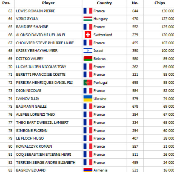 Do flightu 1B WPO sa zaregistrovalo celkom 509 hráčov a po náročnom dni sme spoznali 83 postupujúcich. Ako chipleader z tohto flightu postupuje Ludovic Palain so stackom 1,369,000. Dnes je pre Vás pripravený flight 1C od 12:00 a flight 1D – Turbo od 19:00. To bude zároveň poslednou možnosťou ako si zabezpečiť svoje miesto v sobotnom day 2. O 16:OO štartuje Wanted KO, o 21:00 večerný Sprint a o polnoci nesmie chýbať preslávené Deglingo. Tešíme sa na Vás !