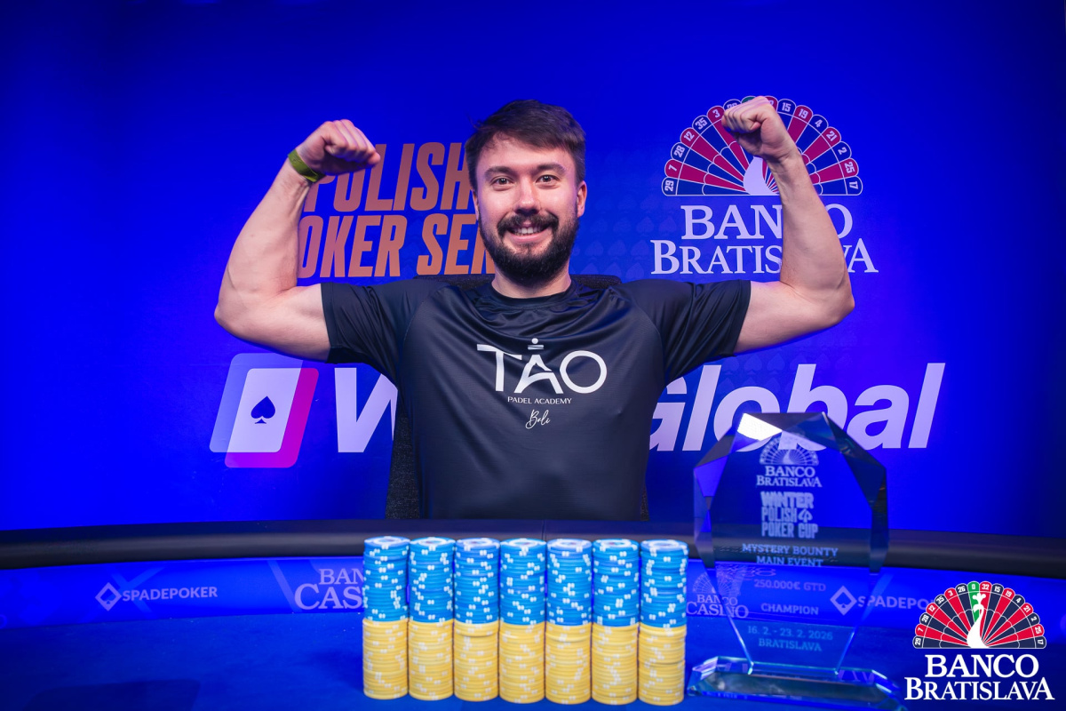 Winter Polish Poker Cup 250,000€ bol brutálnou jazdou, ktorá nastavila európsky rekord vo formáte mystery bounty. Turnaj vyprodukoval masívnych 3,839 entries a ako víťaz z tohto obrovského fieldu odišiel Vitalii Shcherba, ktorý si odniesol 42,796€ + 3,455€ bounty. Hodnota najvyššej bounty bola 41,000€, ktorú si odniesol počas day 2 Piotr Kolenda. Pokrový ošiaľ sa u nás ani zďaleka nekončí, už dnes štartuje The Festival a jeho rozpis nájdete nižšie. Na začiatku marca na nás čakjú Nórske Pokrové Majstrovstvá, ktorých súčasťou bude North Poker Masters s garanciou 300,000€. Pre viac informácií sledujte náš web a sociálne siete. Tešíme sa na Vás !